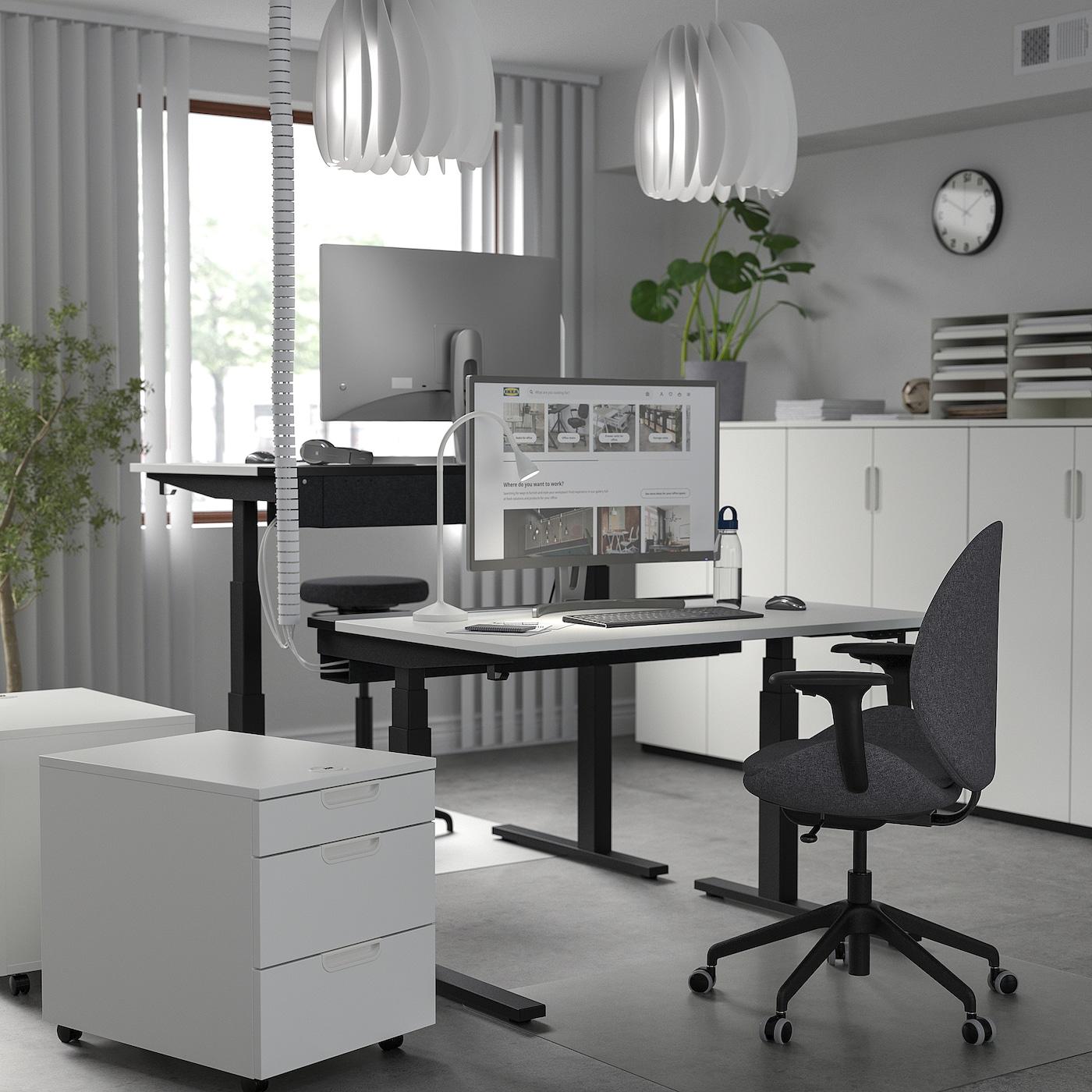 Провода можно убрать в отделение стола с крышкой и провести под столом в лоток для размещения проводов.
