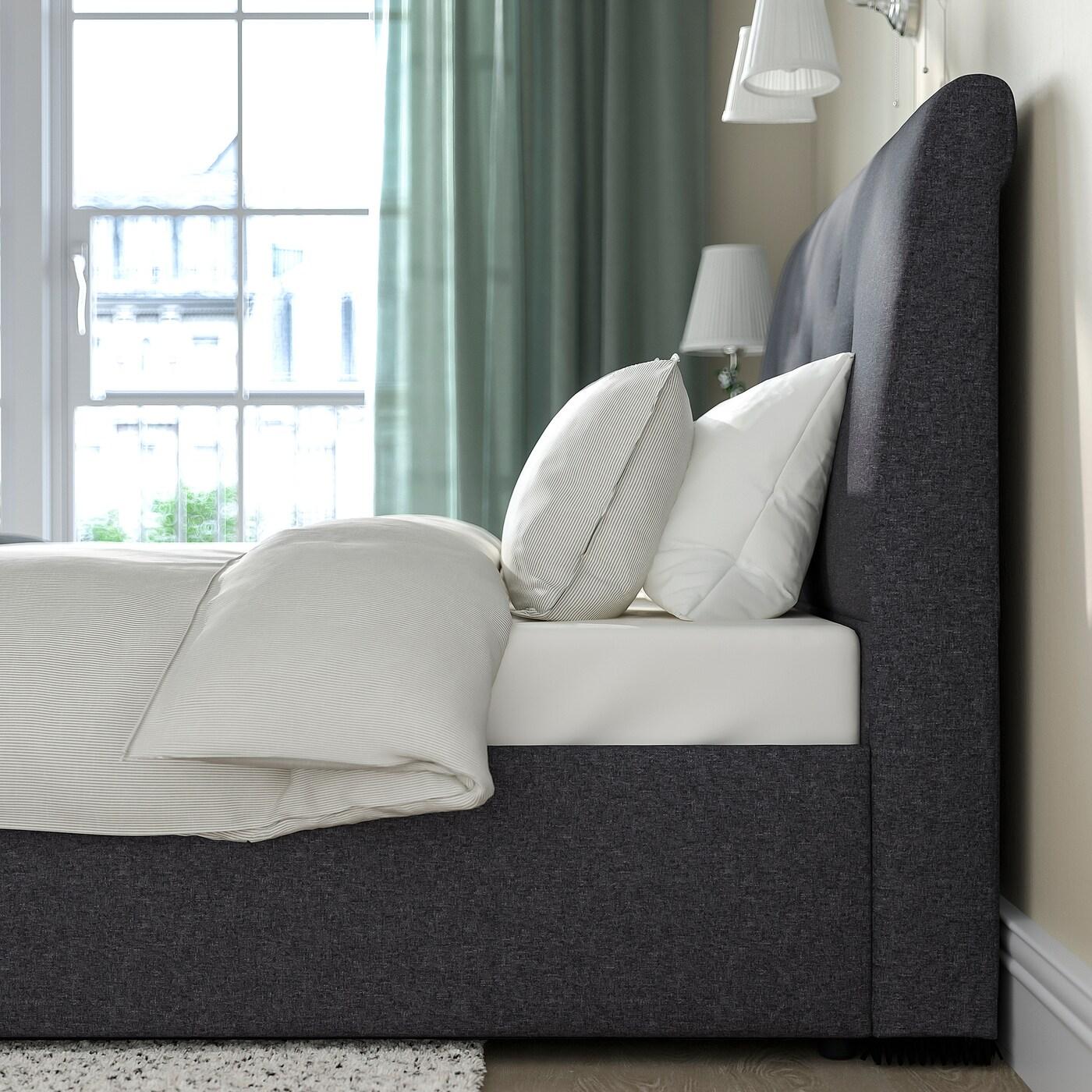 Прочная темно-серая ткань обивки ГУННАРЕД придает интерьеру спальни классический облик.