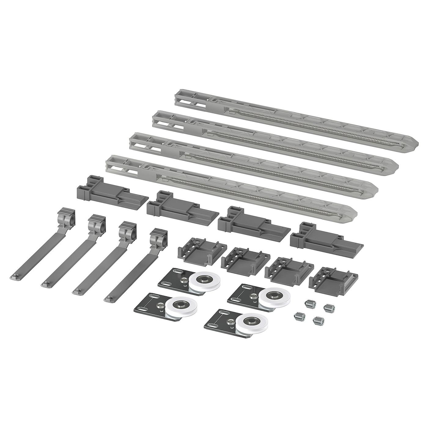 Если вы создаете решение с 2, 4 раздвижными дверями СКЮТТА или более с использованием направляющей с 2 пазами, эти крепления понадобятся вам для двух дверей по краям.