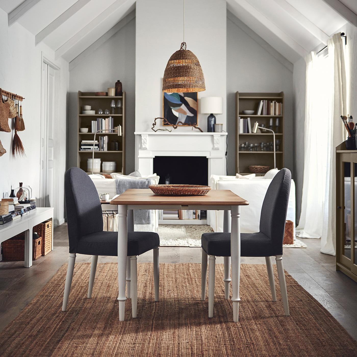 Стол гармонично сочетается со стулом и скамьей ДАНДЭРЮД.