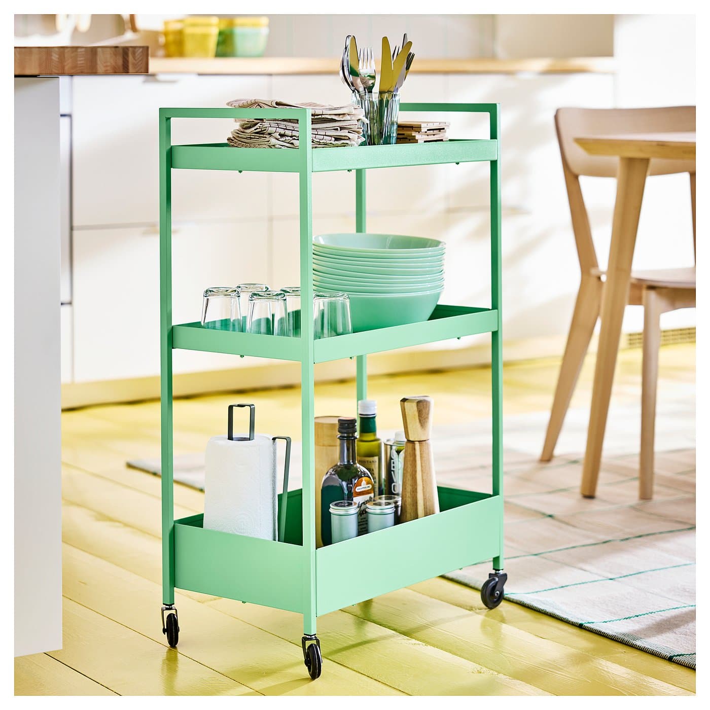 Благодаря устойчивой конструкции и колесикам легко передвигать. Компактные размеры позволяют использовать тележку даже в ограниченном пространстве.