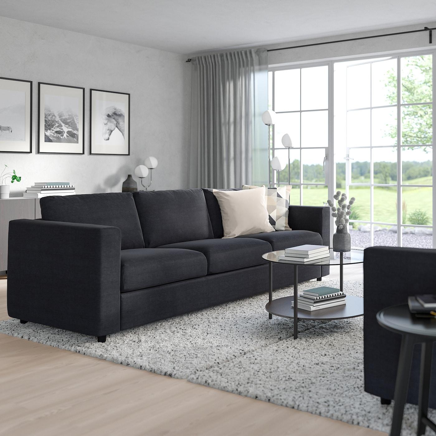 Можно дополнить подголовником ВИМЛЕ, чтобы сделать спинку дивана выше и обеспечить комфортную опору для шеи.