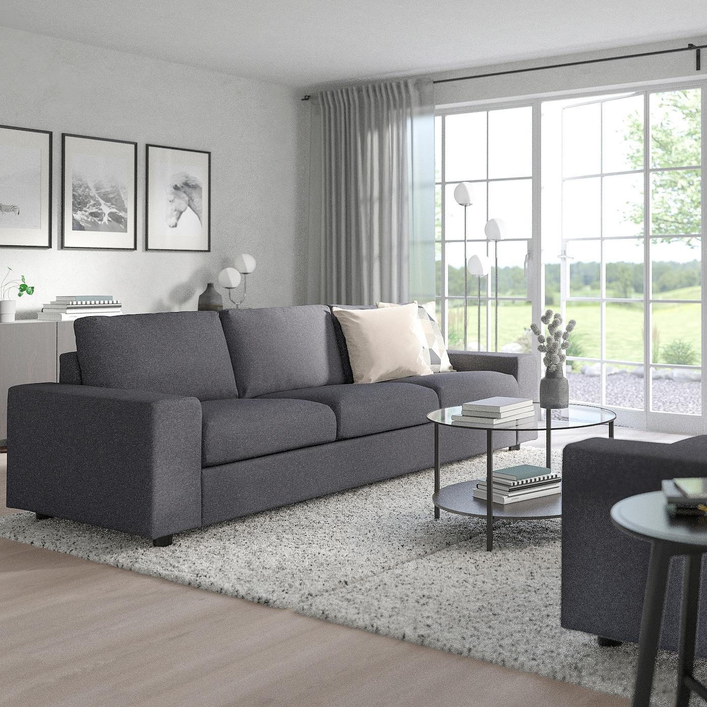 Можно дополнить подголовником ВИМЛЕ, чтобы сделать спинку дивана выше и обеспечить комфортную опору для шеи.