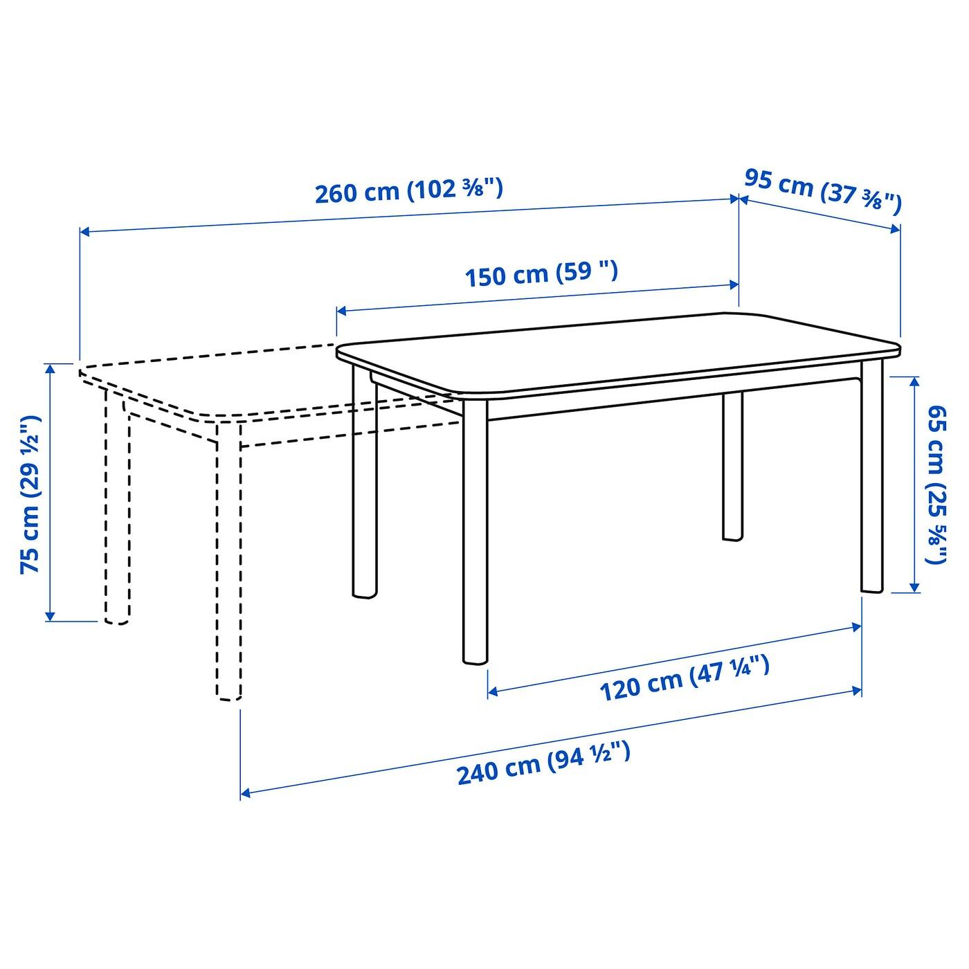 Размер этого стола «3 в 1» легко регулируется на 4, 6 или 8 человек с помощью прилагающихся вкладных досок. А если добавить стульев и по коротким сторонам стола, вы сможете рассадить до 10 гостей.