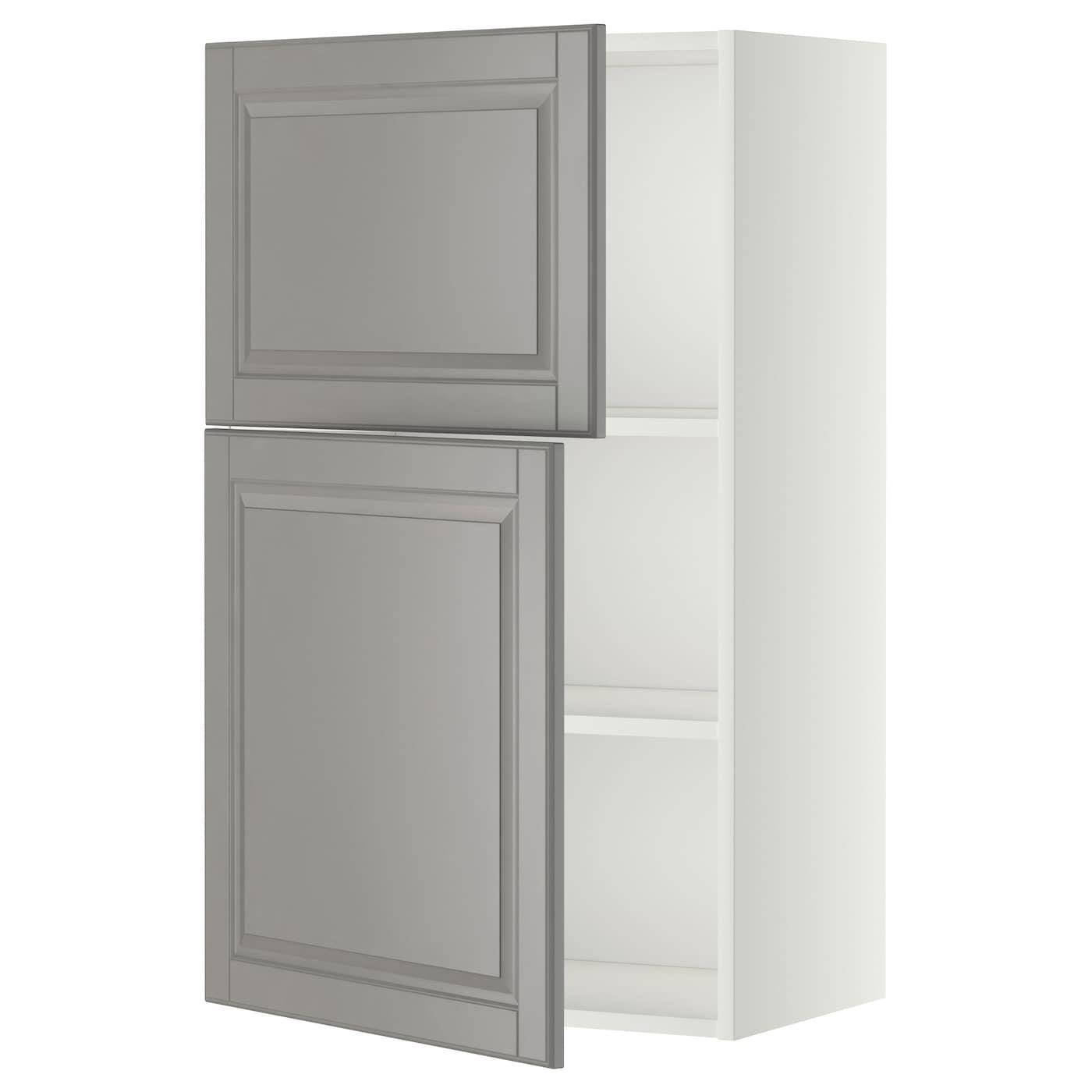 навесной шкаф с полками/2дверцы, белый/Bodbyn серый, 60x100 см