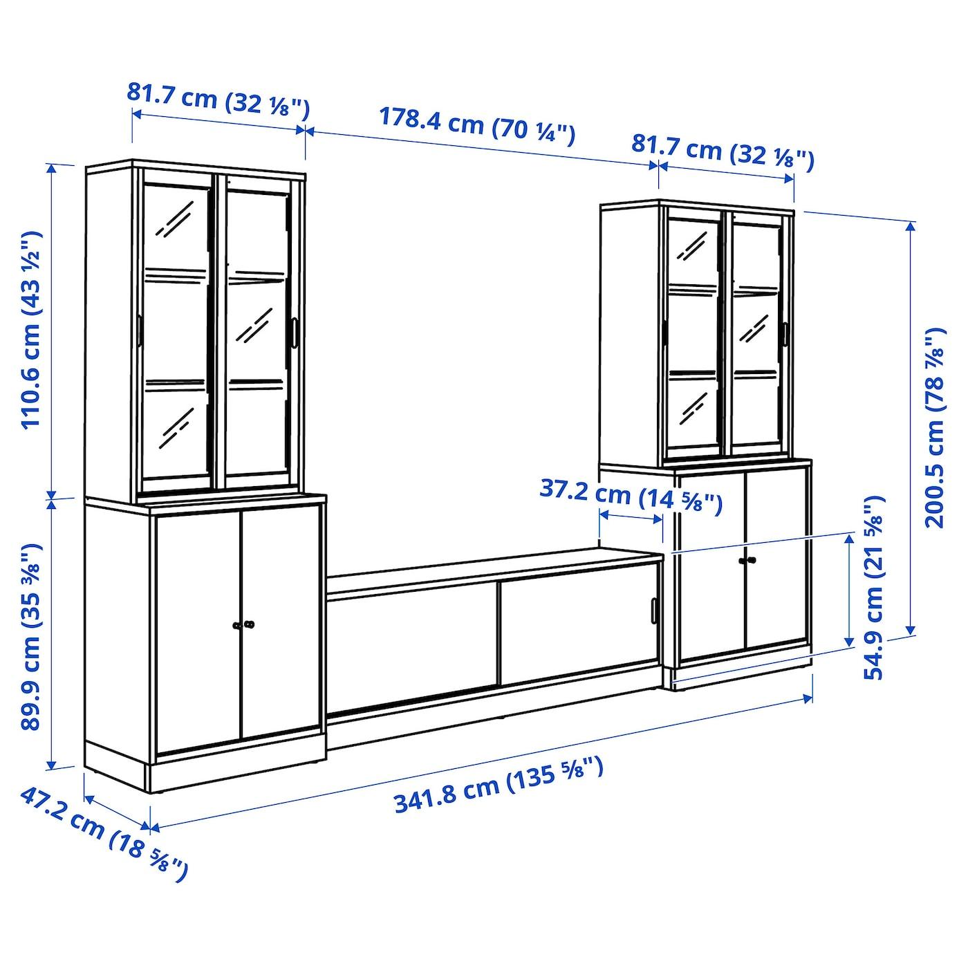 Эта комбинация для ТВ позволит вам продемонстрировать любимые вещи за стеклянными дверцами, а аппаратуру и провода зарыть глухими дверцами.