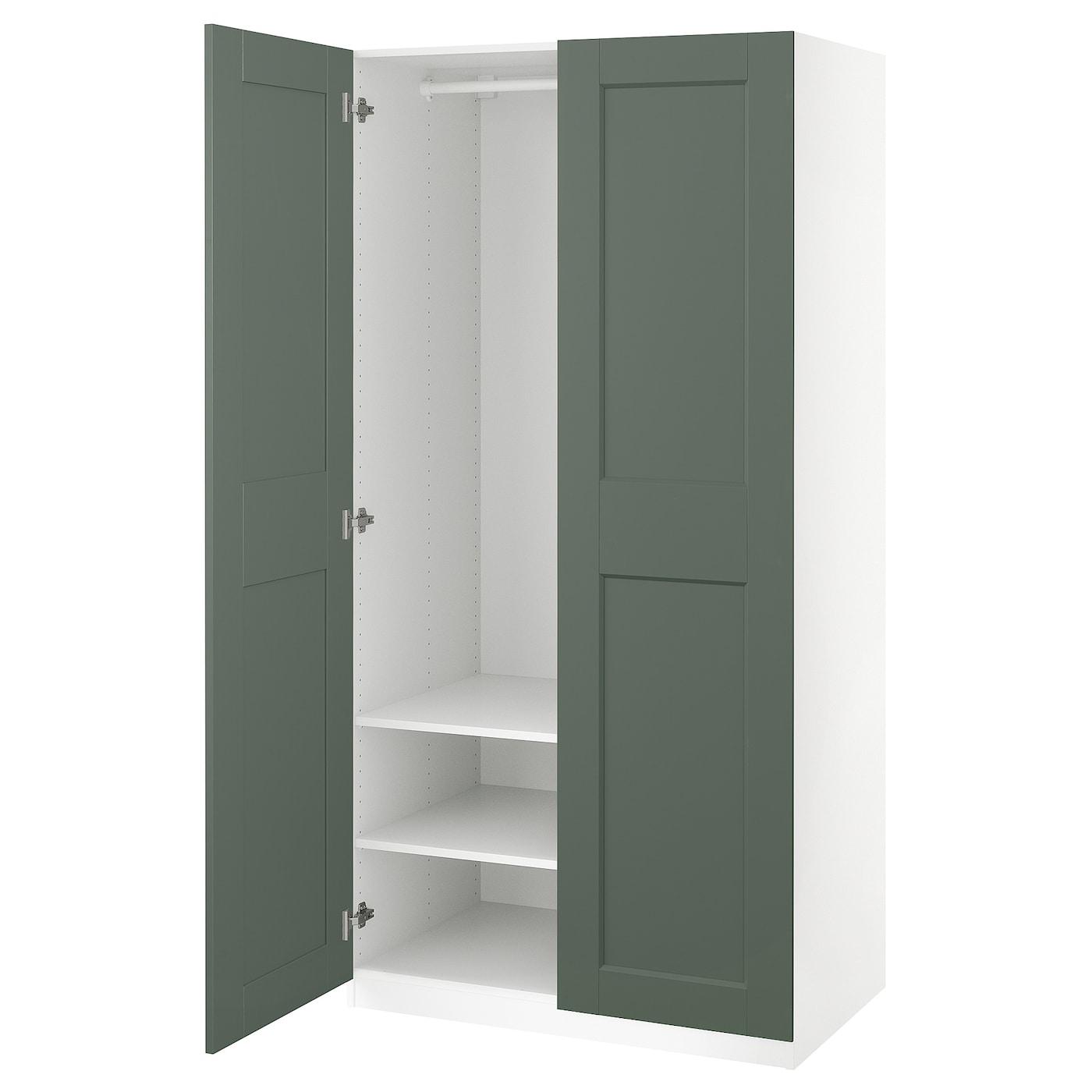 гардероб, комбинация, белый/серо-зеленый, 100x60x201 см