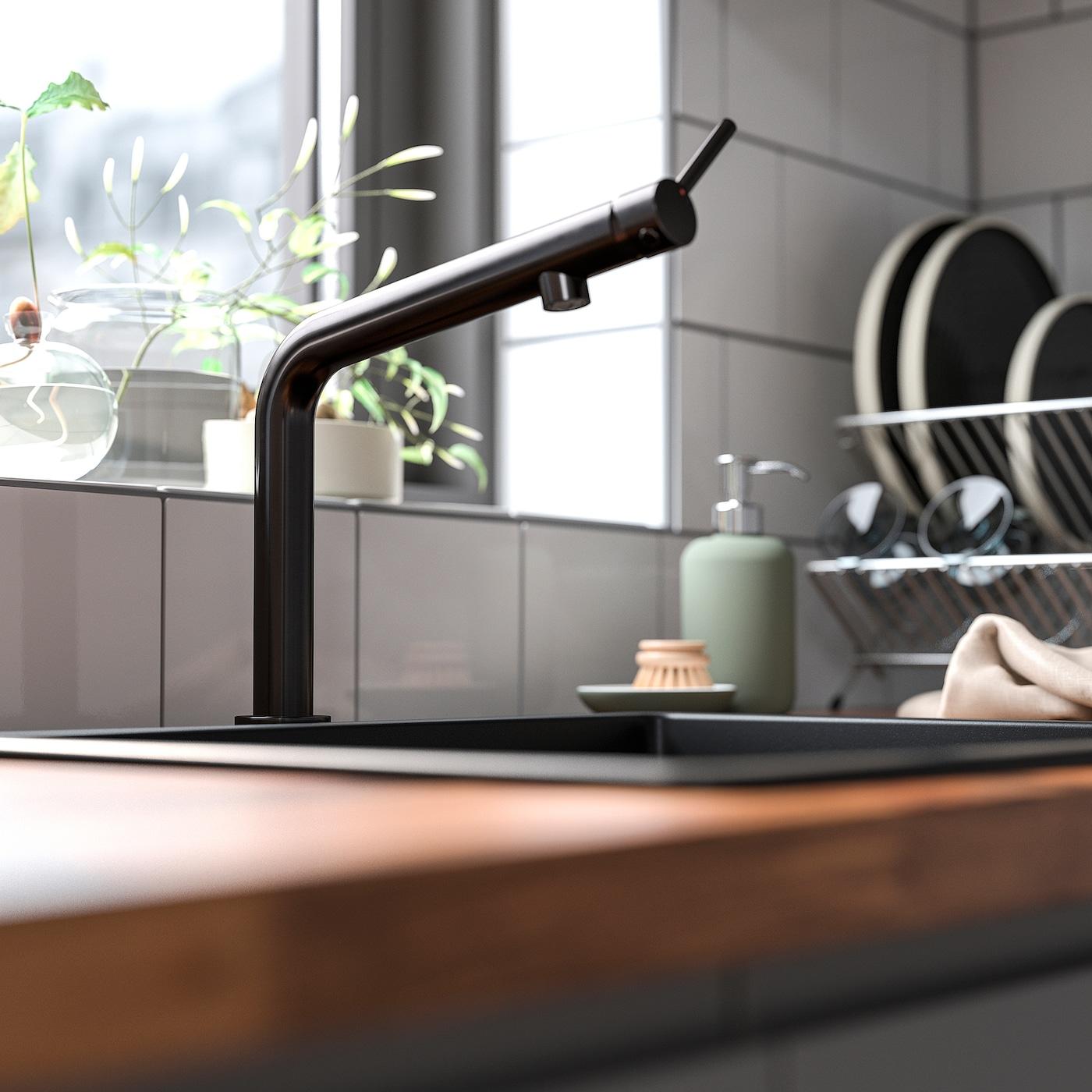 Рычаг расположен на конце носика, поэтому до него легко дотянуться, включая или выключая воду.