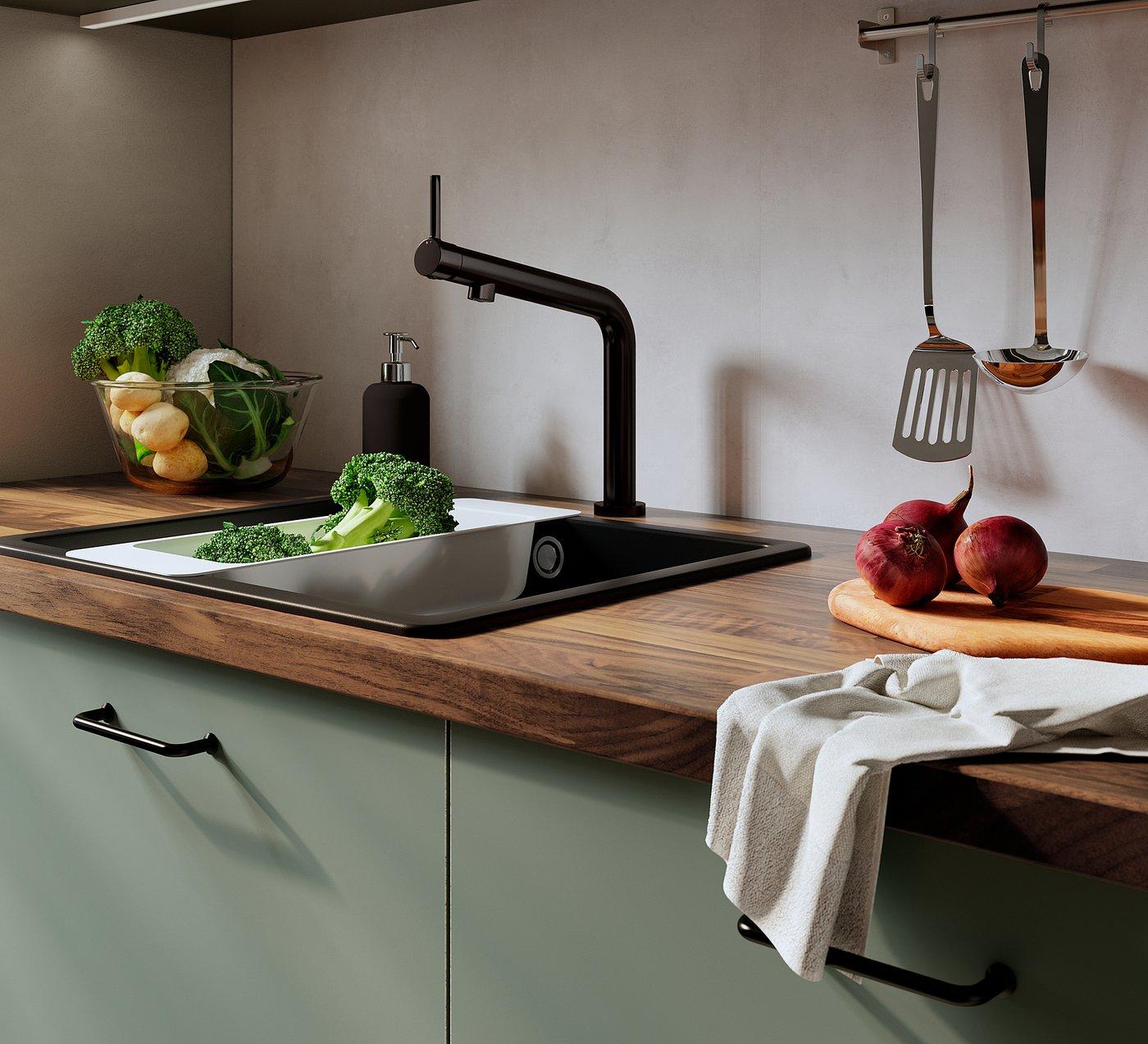 Устойчивость к воздействию тепла, воды, жира и загрязнениям — можно установить на стене за кухонной столешницей и варочной панелью.