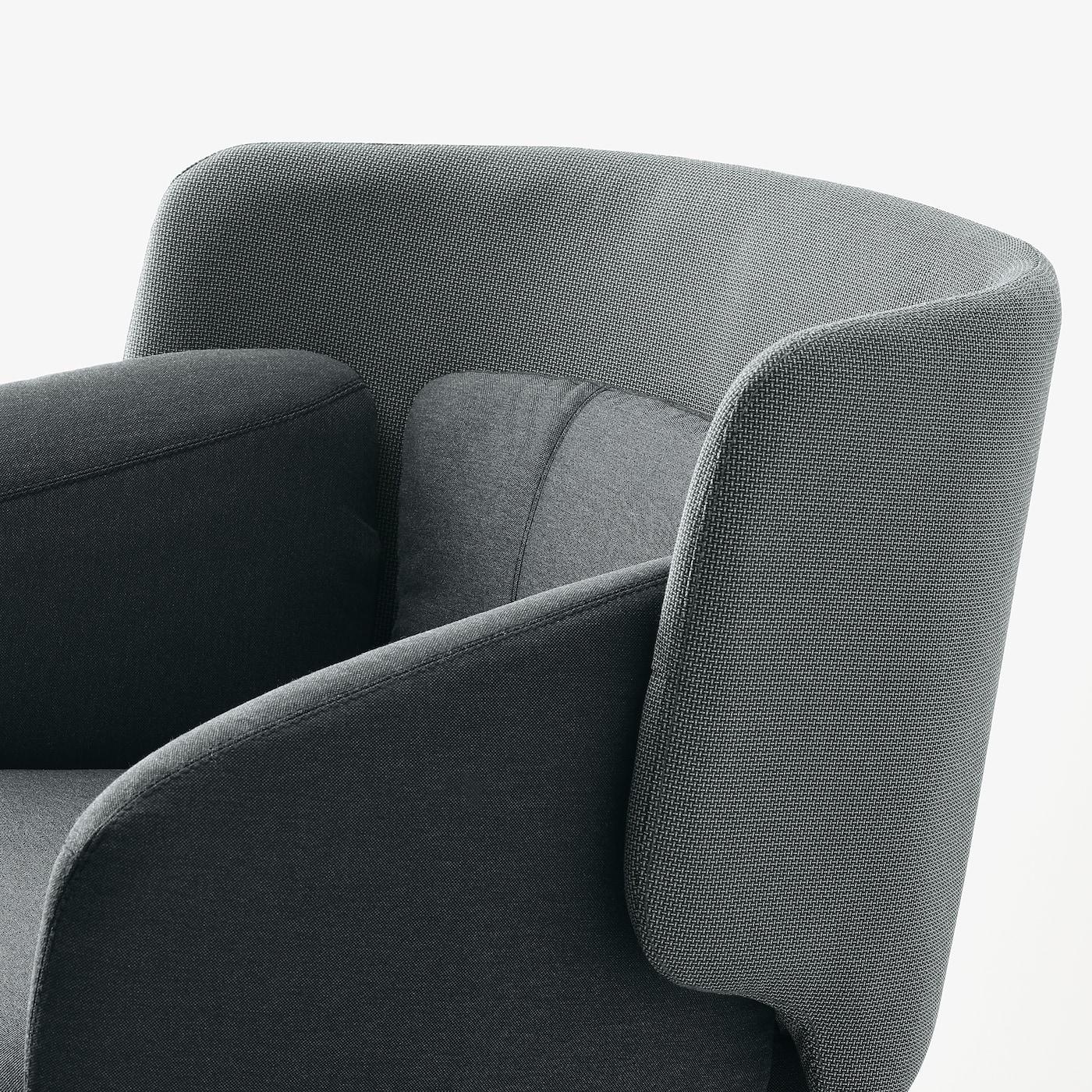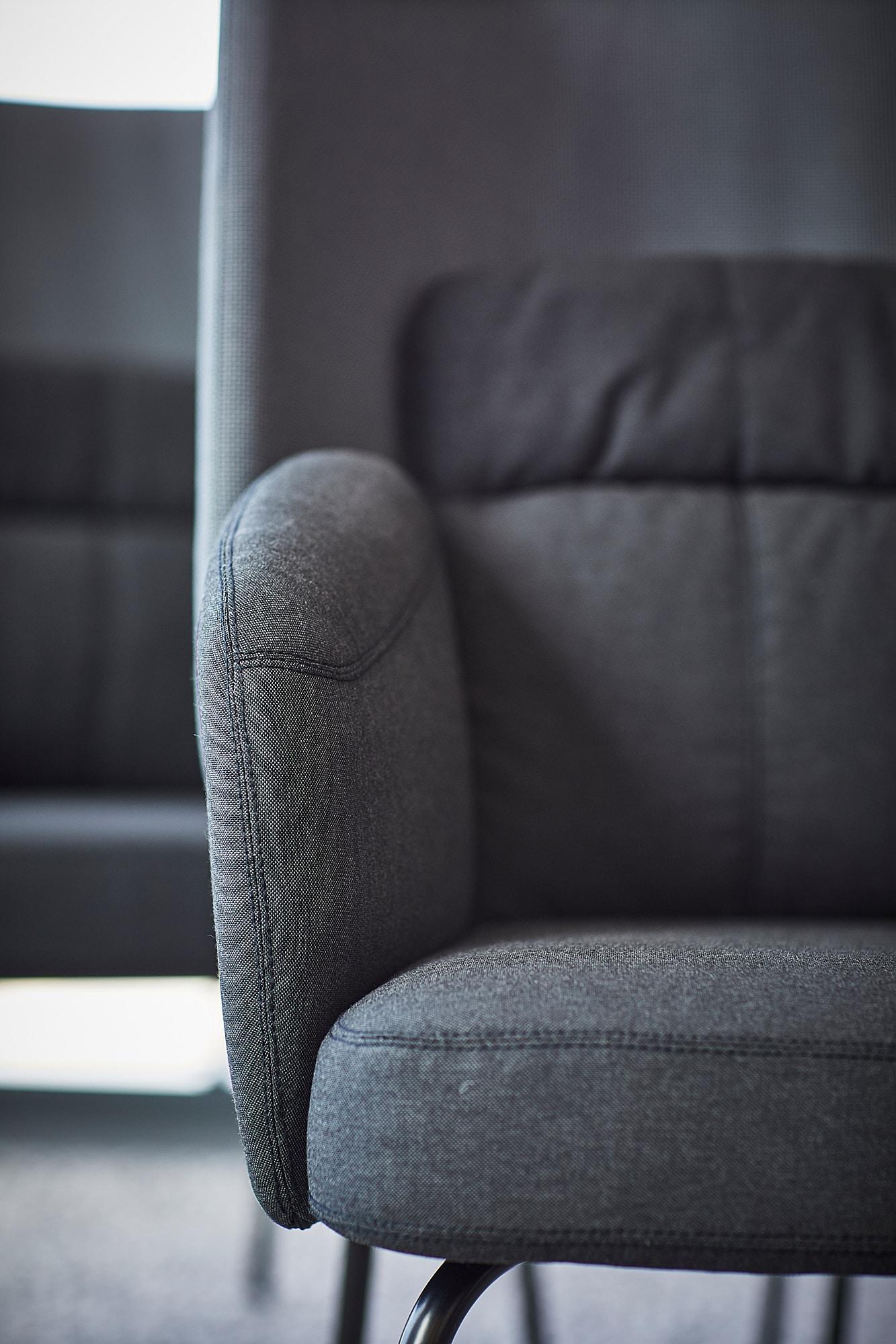 Для обивки использованы полиэстерные ткани Висле и Кабуса. Висле (сиденье и спинка) — окрашенная в пряже прочная полиэстерная ткань с гладкой двухцветной поверхностью. Для высокой спинки использована прочная ткань Кабуса лаконичного дизайна.