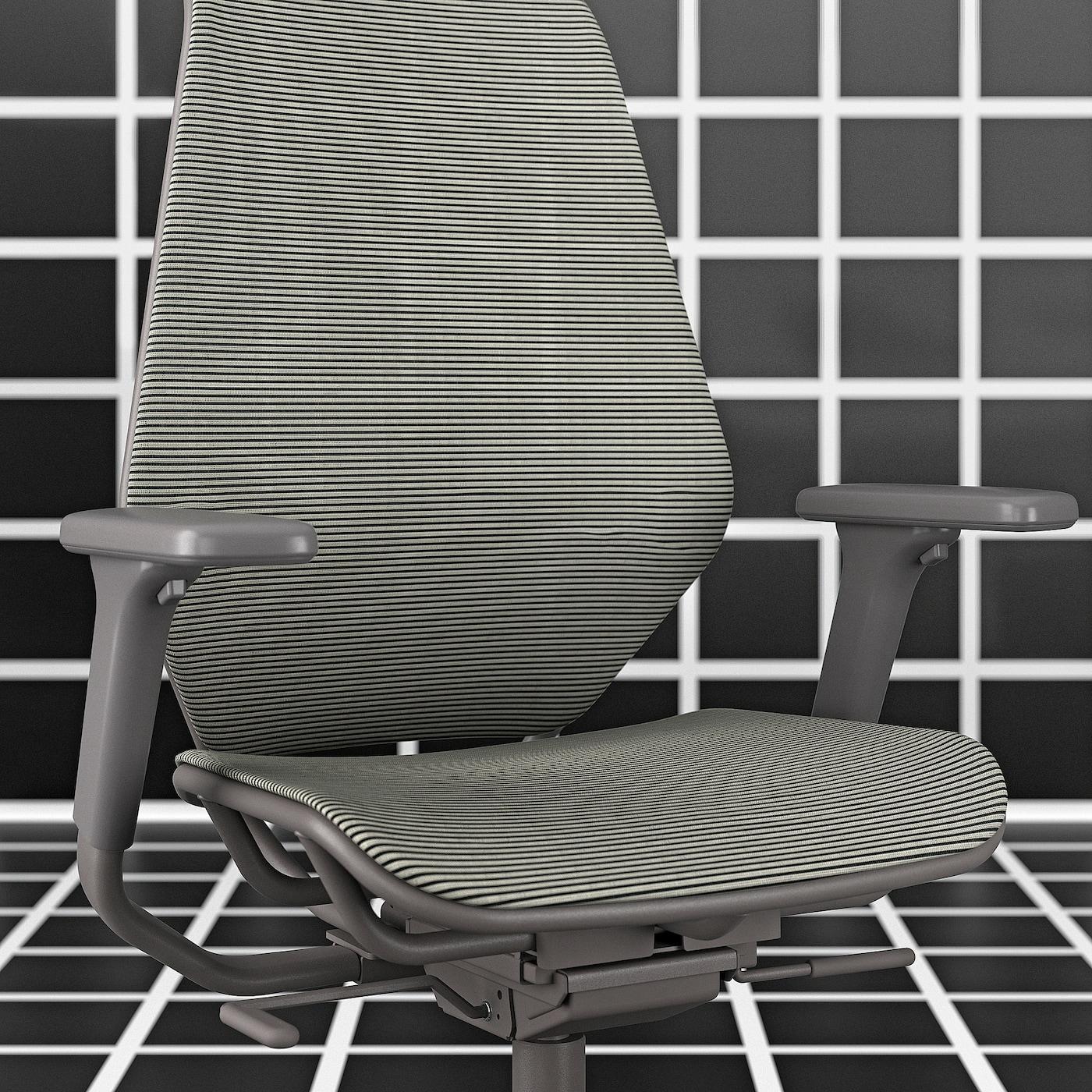 Это кресло обеспечивает удобную опору для рук и снимает нагрузку с шеи и плеч, поскольку мягкие подлокотники можно поднимать, опускать, двигать вперед, назад и внутрь.