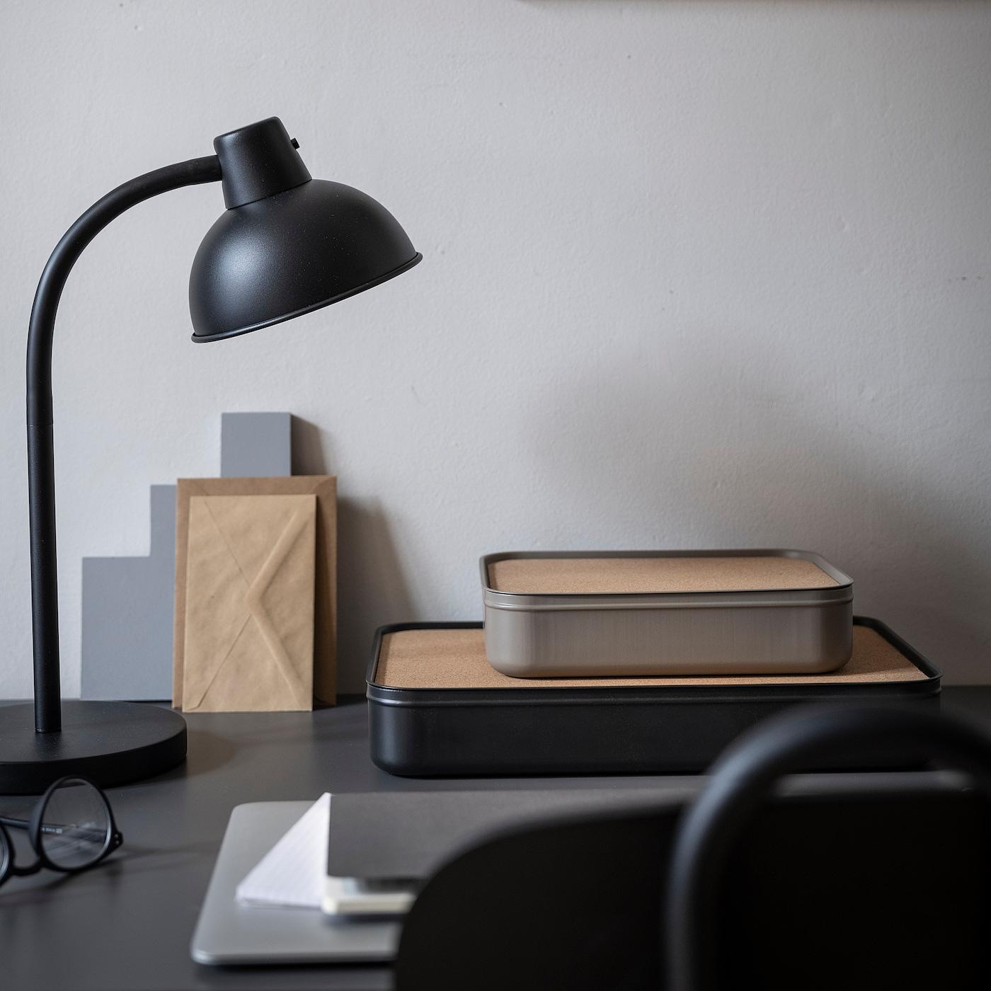 Прочный металлический контейнер с пробковой крышкой, на которую удобно ставить другие контейнеры, не царапая их, чтобы все необходимое было в одном месте.