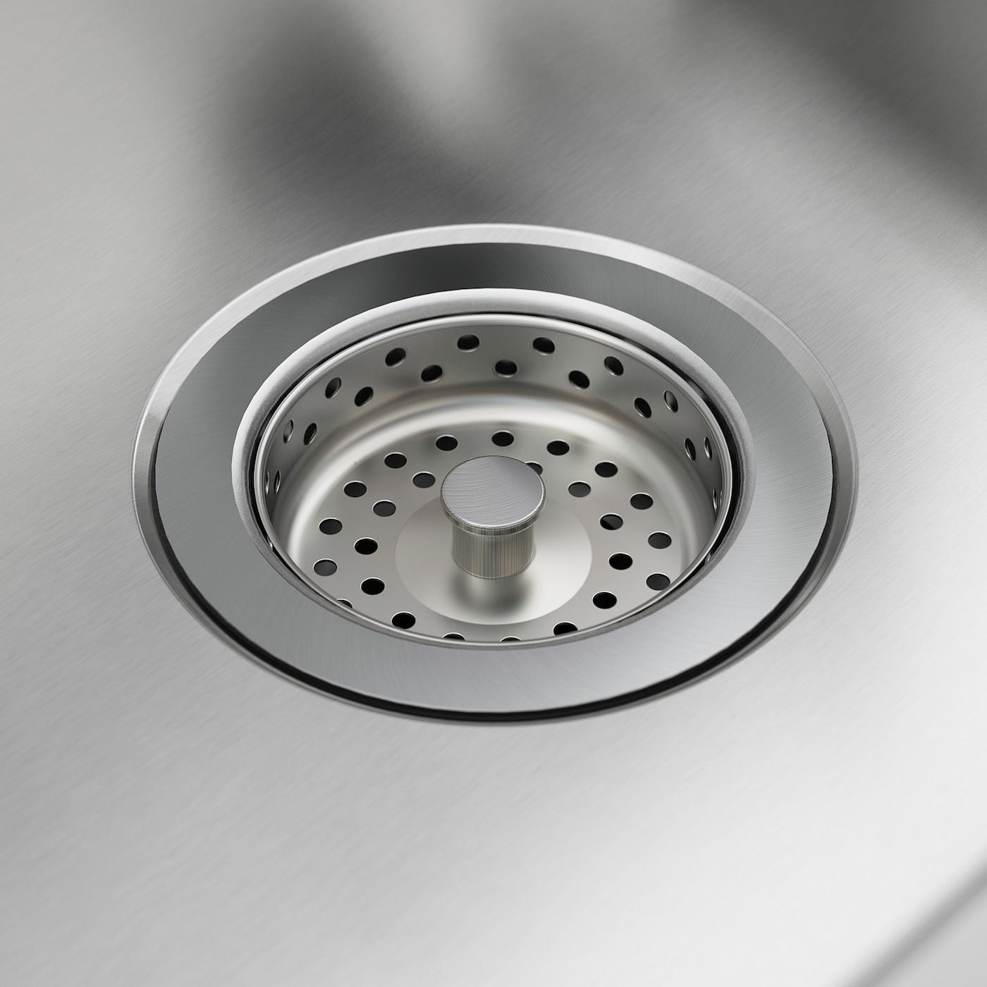 На широком заднем бортике мойки ЛОНГУДДЕН достаточно места для моющих средств, губок и щеток, чтобы не занимать поверхность столешницы.