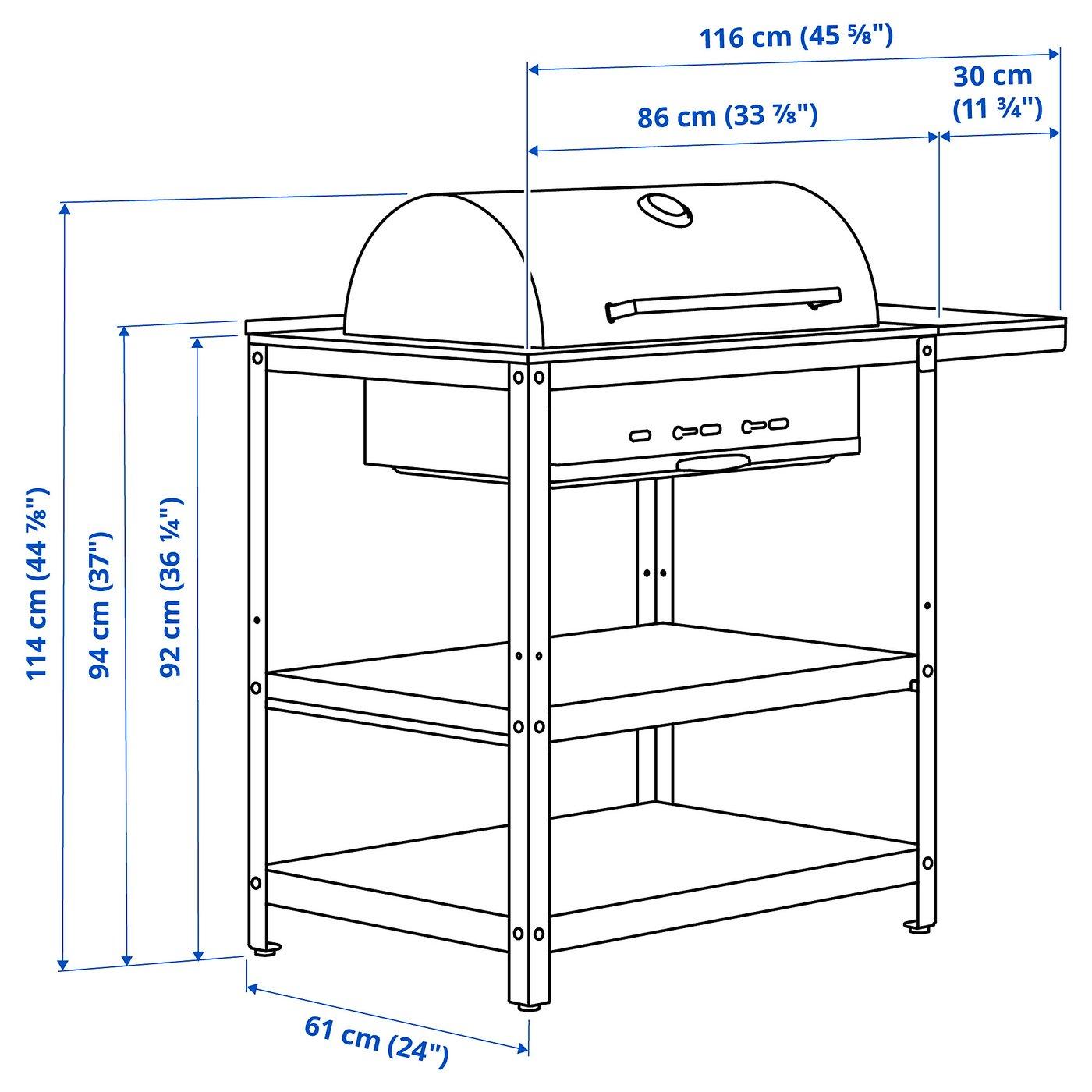 На полках достаточно места для тарелок, бокалов, кухонных принадлежностей и других аксессуаров, которые могут понадобиться для барбекю.