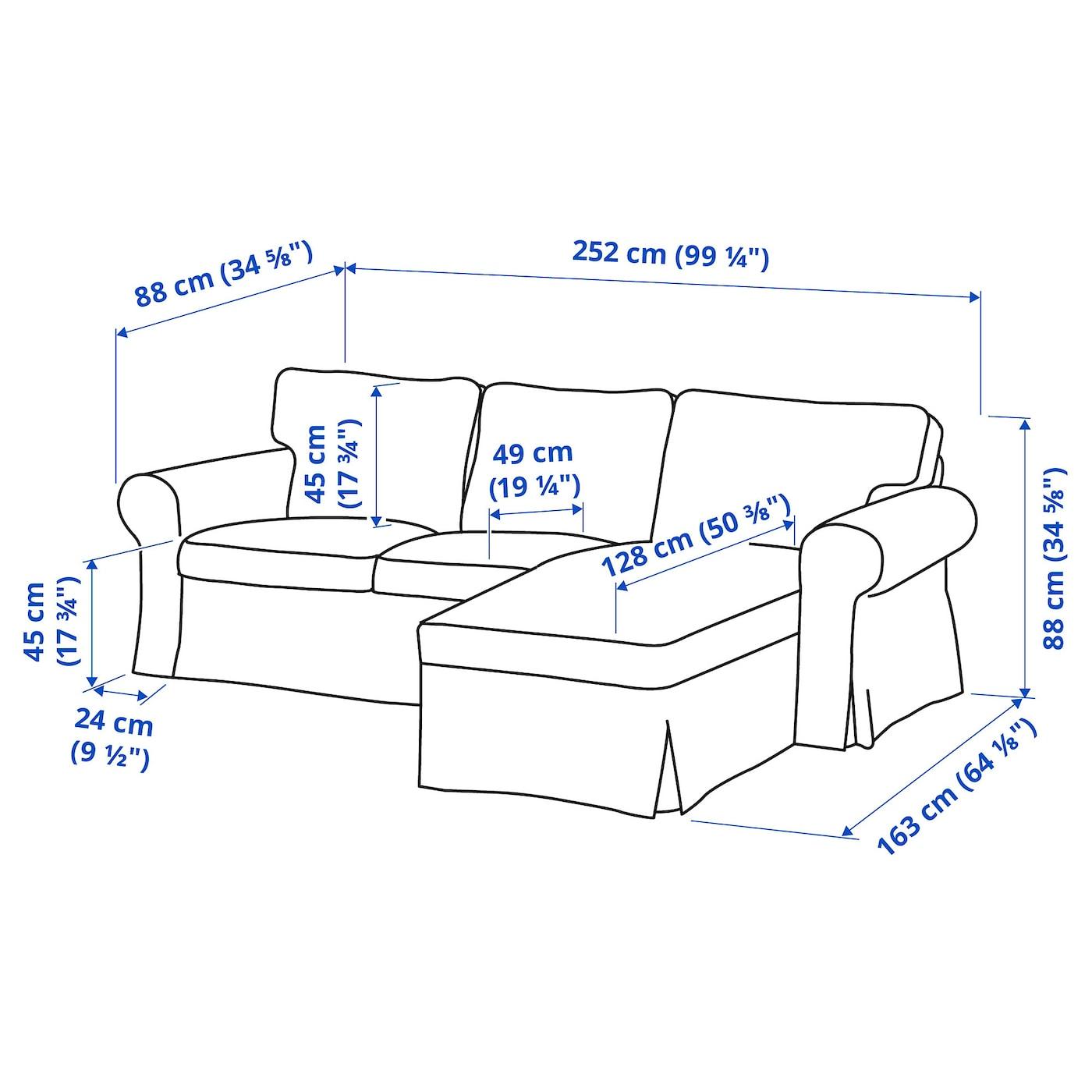 3-местный диван с козеткой, Hakebo серо-зеленый dimensions