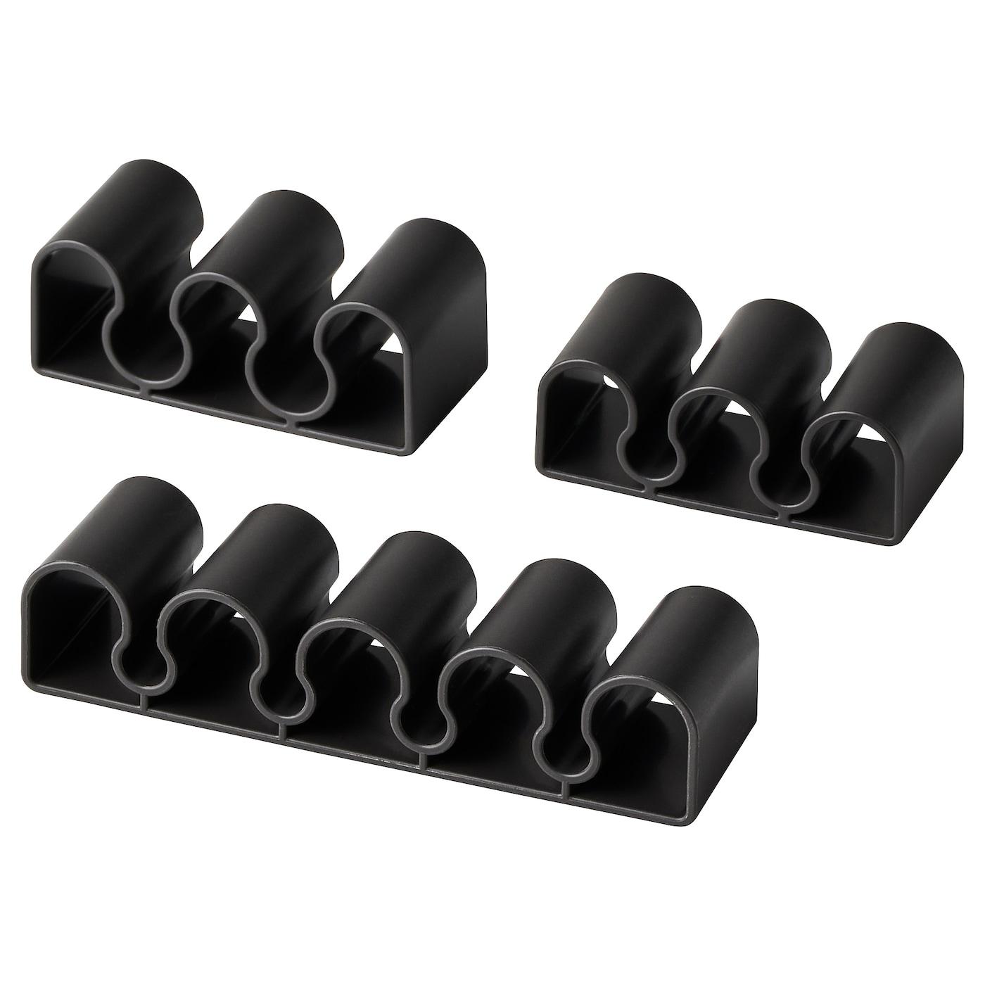 Держатели КАЛЬКСТУФФ помогут организовать порядок в размещении проводов. Держатели можно установить на боковой поверхности письменного стола, за телевизором или в другом месте, где вам необходимо.
