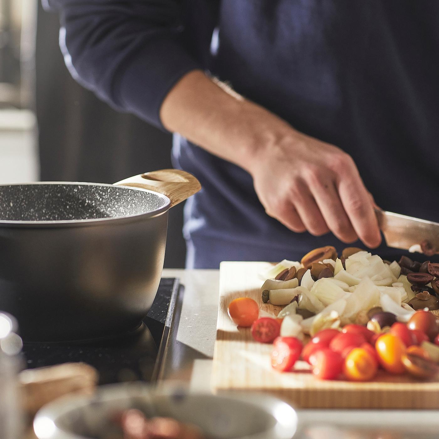 Прочное золь-гелевое керамическое антипригарное покрытие предотвращает пригорание и прилипание пищи к поверхности.
