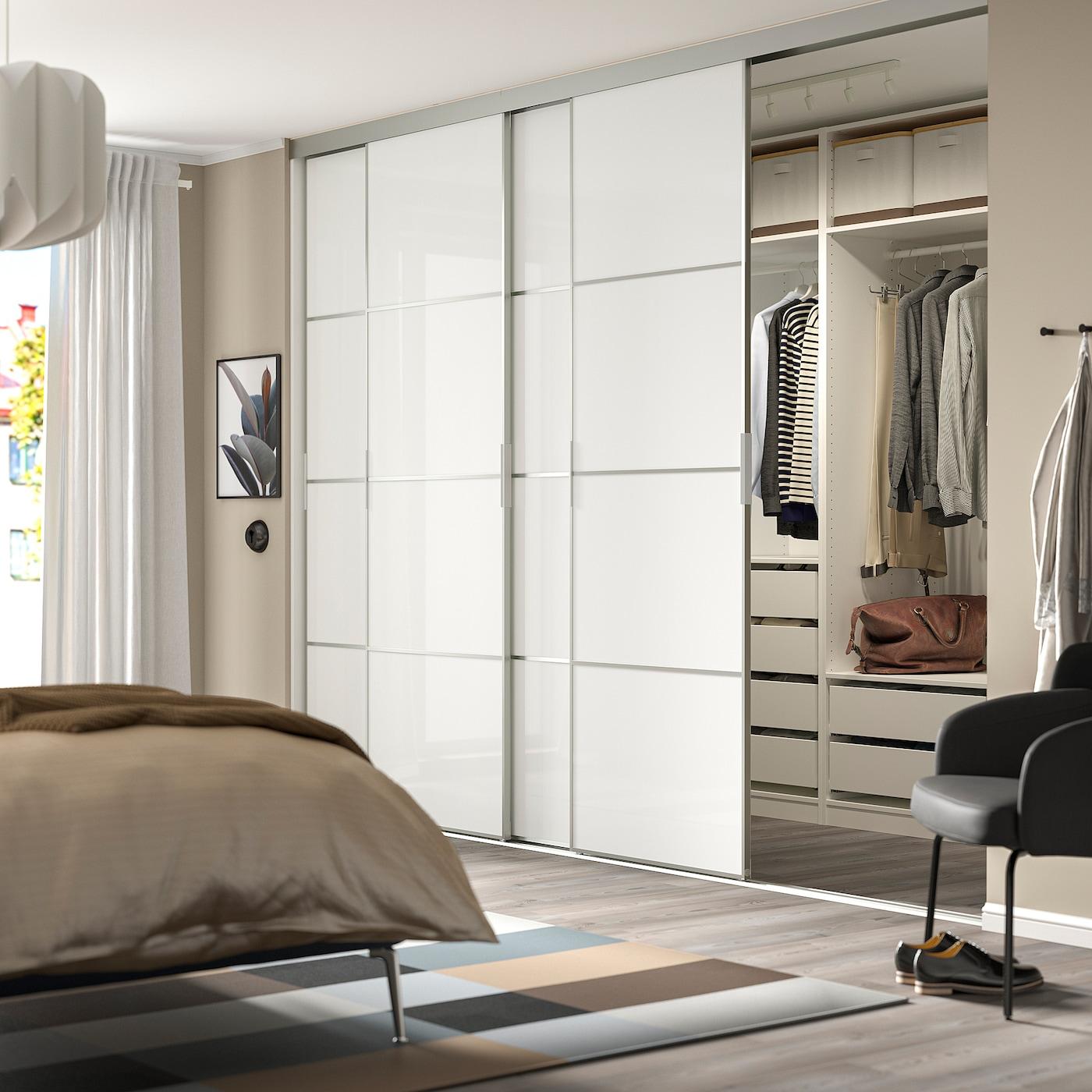 дверь раздвижная, комбинация, алюминий/белый стекло, 326x240 см