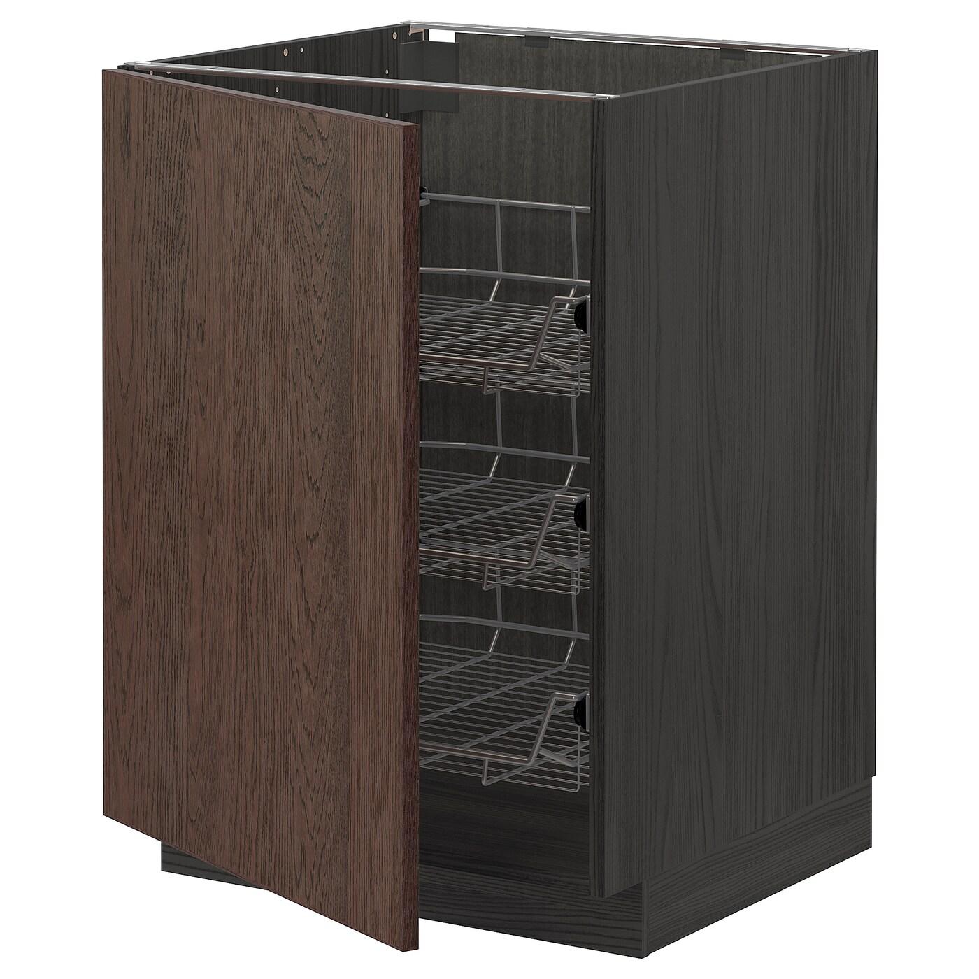 напольный шкаф/проволочные корзины, черный/Sinarp коричневый, 60x60 см