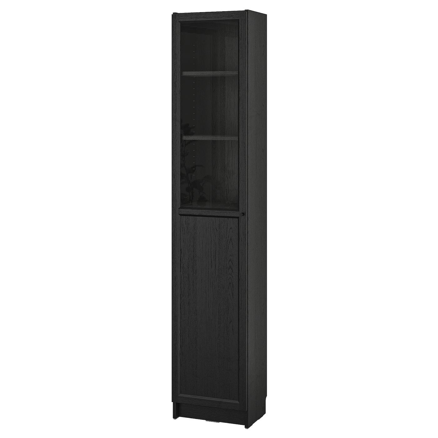 стеллаж/панельная/стеклянная дверь, черный под дуб, 40x30x202 см