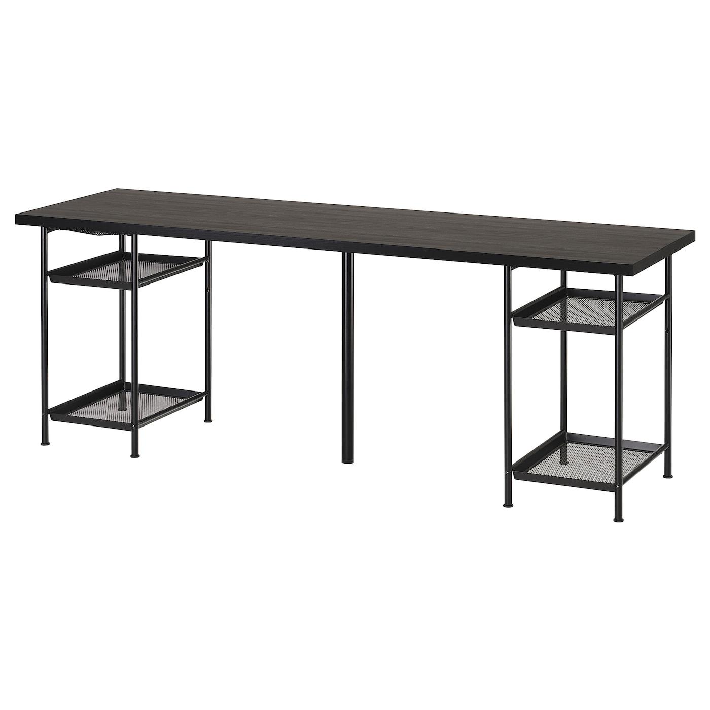 На двух полках достаточно места для бумаги, блокнотов и книг, что позволяет освободить столешницу.