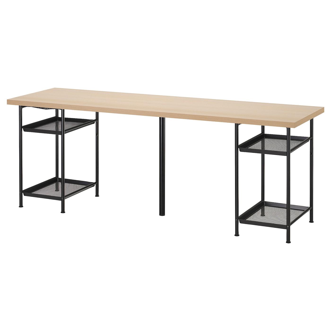 На двух полках достаточно места для бумаги, блокнотов и книг, что позволяет освободить столешницу.
