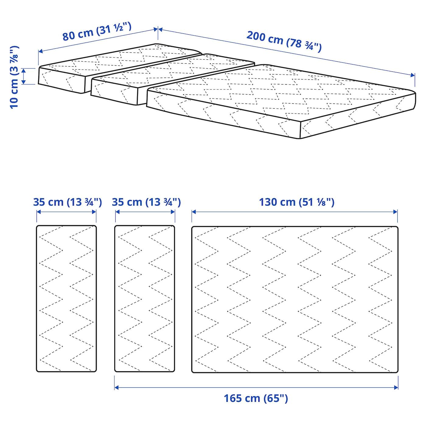 Один матрас — три длины. С помощью двух дополнительных частей длину матраса можно увеличивать со 130 см до 165 и 200 см по мере роста ребенка.