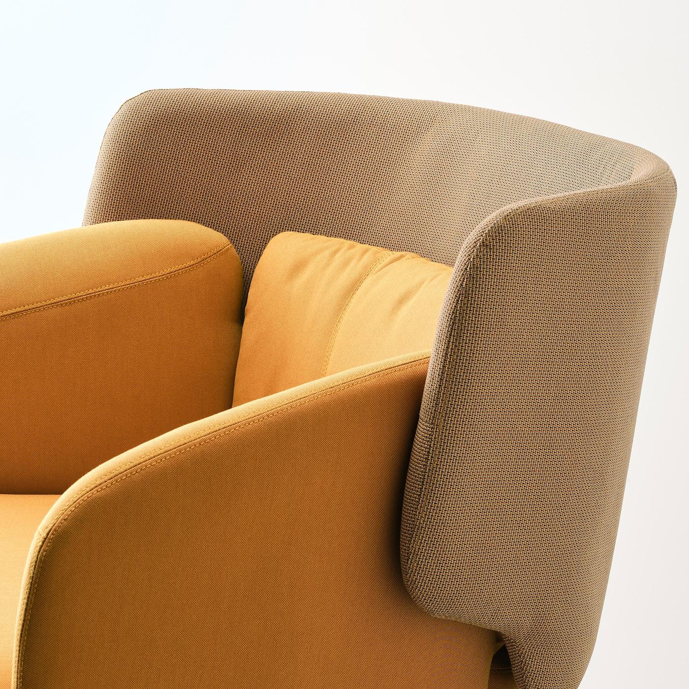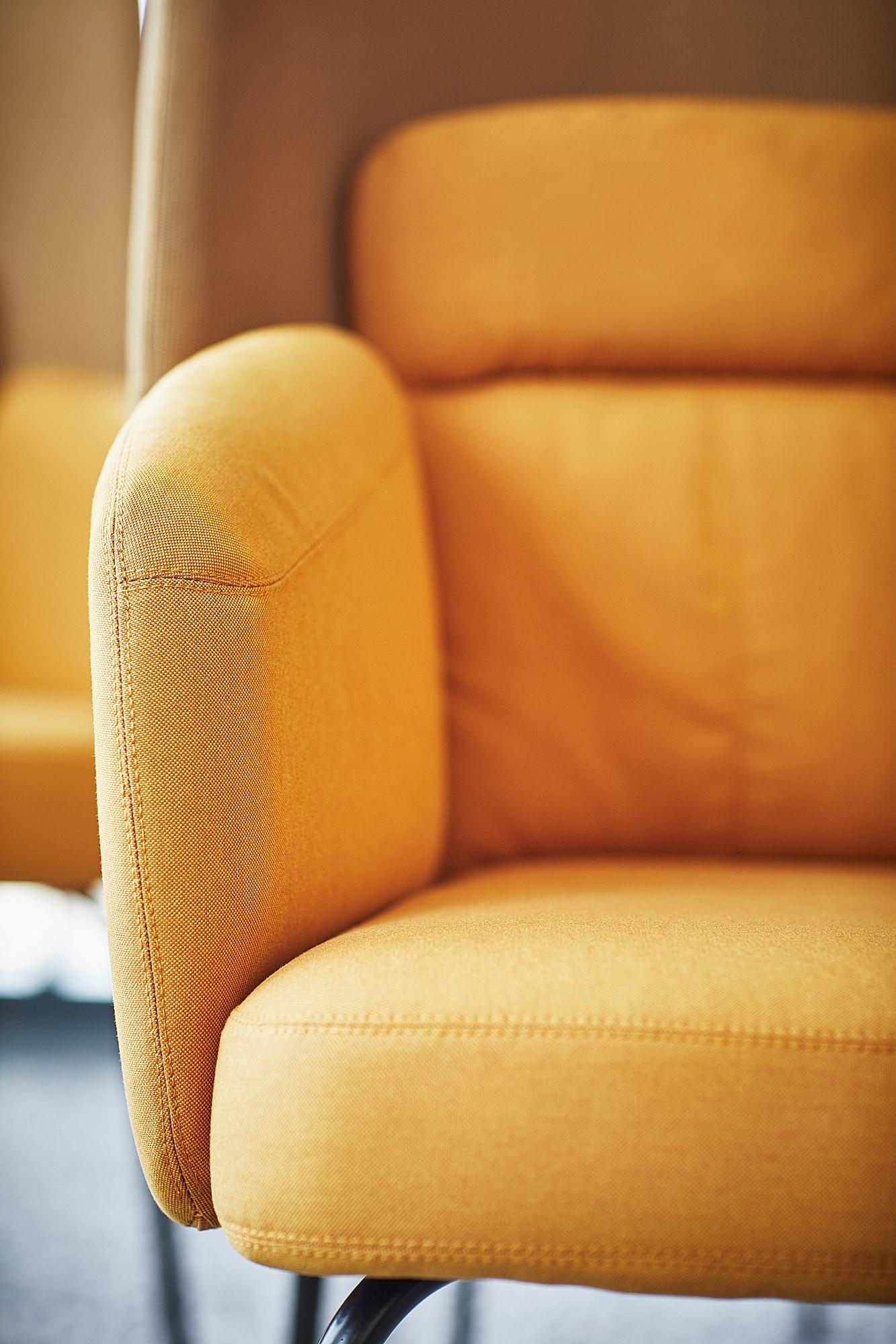 Для обивки использованы полиэстерные ткани Висле и Кабуса. Висле (сиденье и спинка) — окрашенная в пряже прочная полиэстерная ткань с гладкой двухцветной поверхностью. Для высокой спинки использована прочная ткань Кабуса лаконичного дизайна.