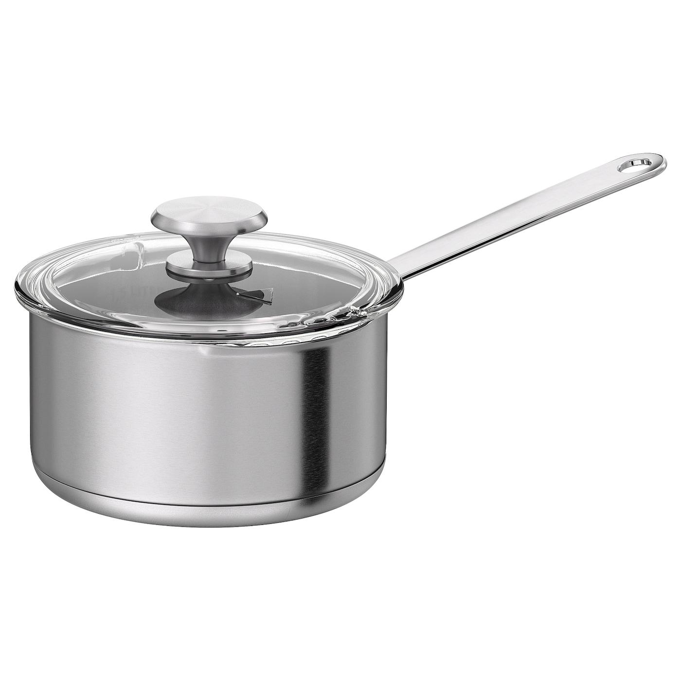 Эта кастрюля оснащена крышкой из жаропрочного стекла с встроенным ситечком.