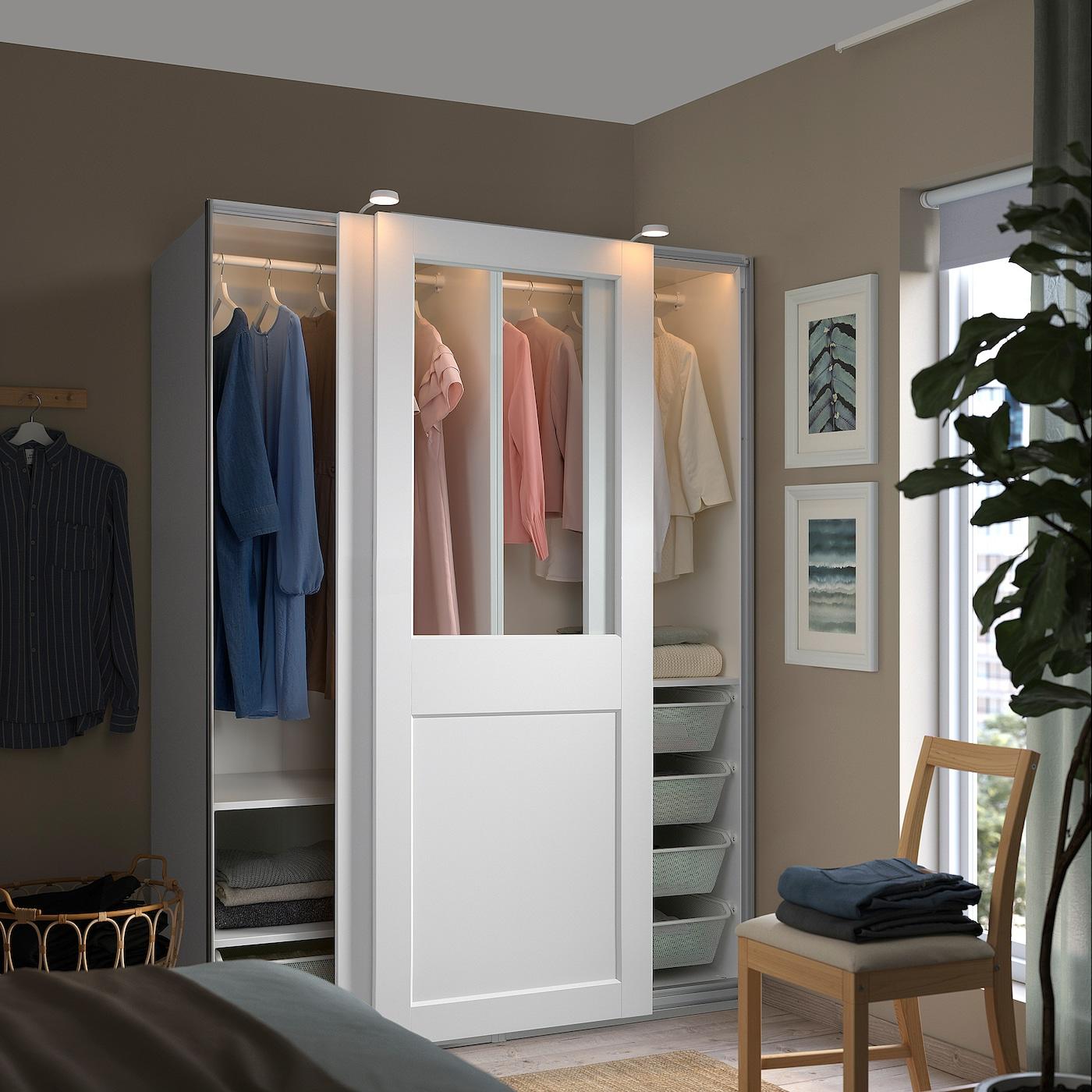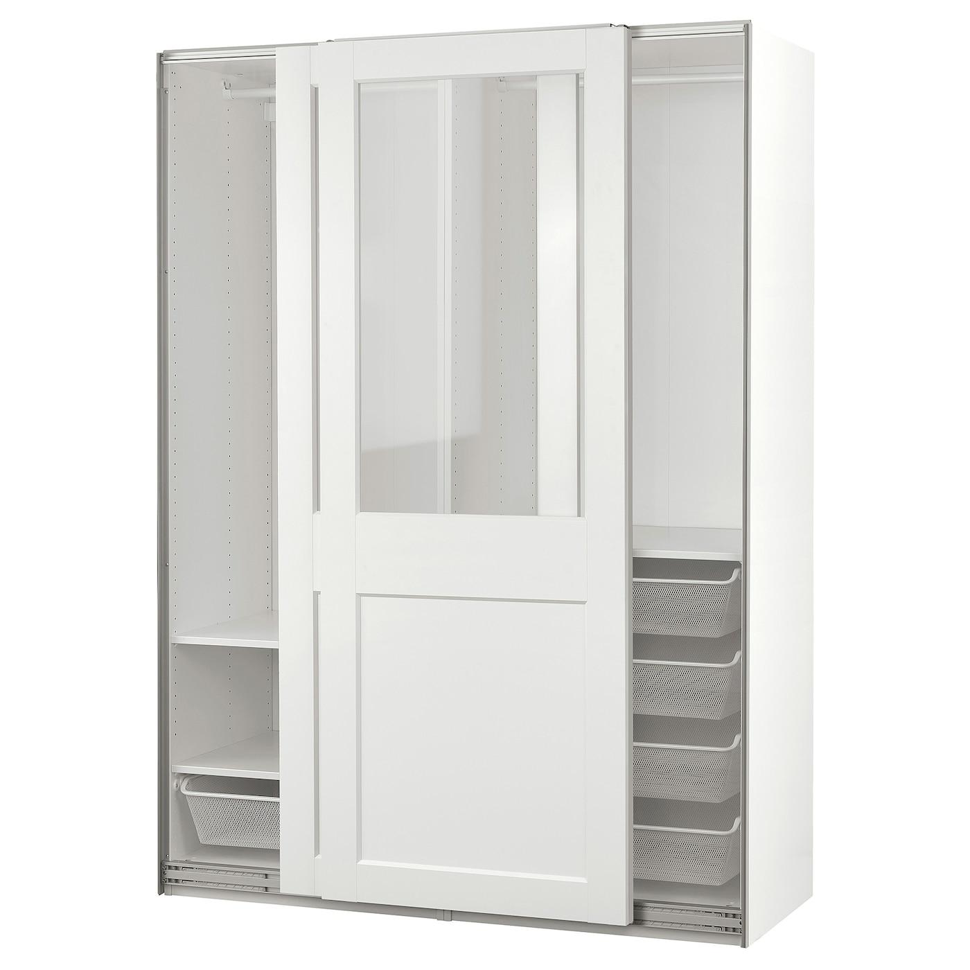 гардероб с раздвижными дверьми, белый/прозрачное стекло белый, 150x66x201 см