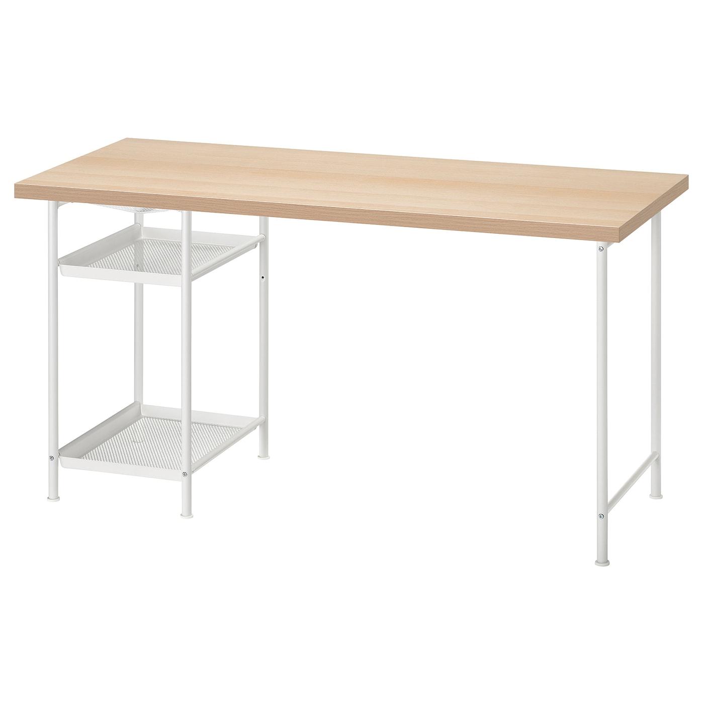 На двух полках достаточно места для бумаги, блокнотов и книг, что позволяет освободить столешницу.