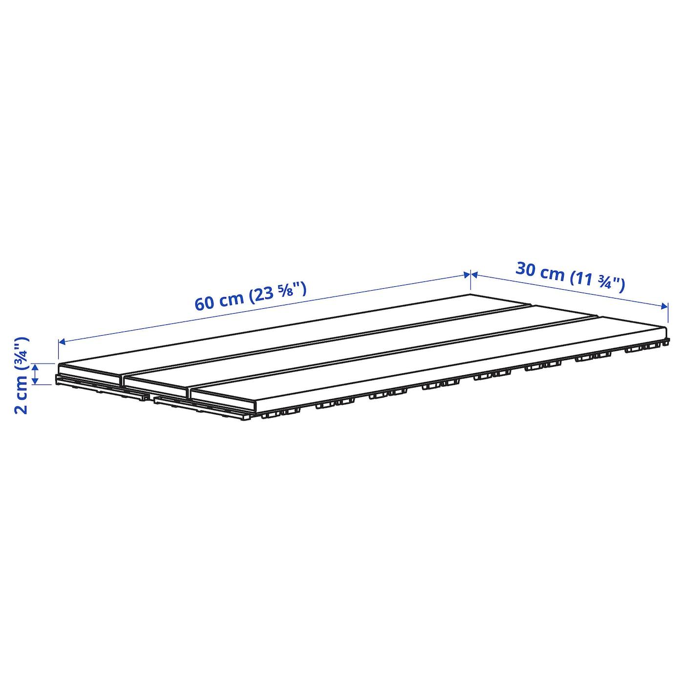 Настил УТЛЭНГАН сделан из древесно-пластикового композита — прочного и простого в уходе материала, устойчивого к атмосферным осадкам. На вид он почти неотличим от натурального дерева, и по нему приятно ходить босиком.