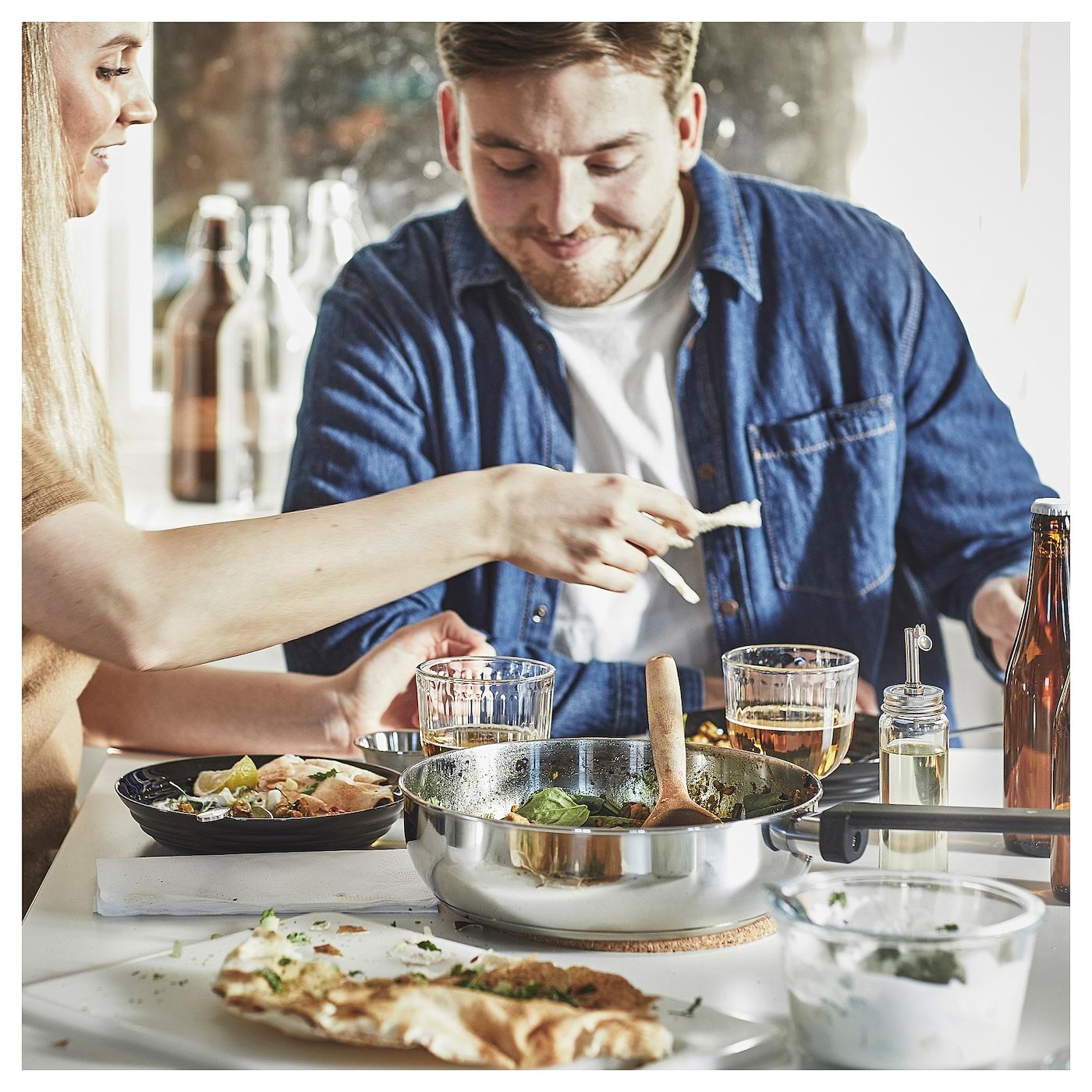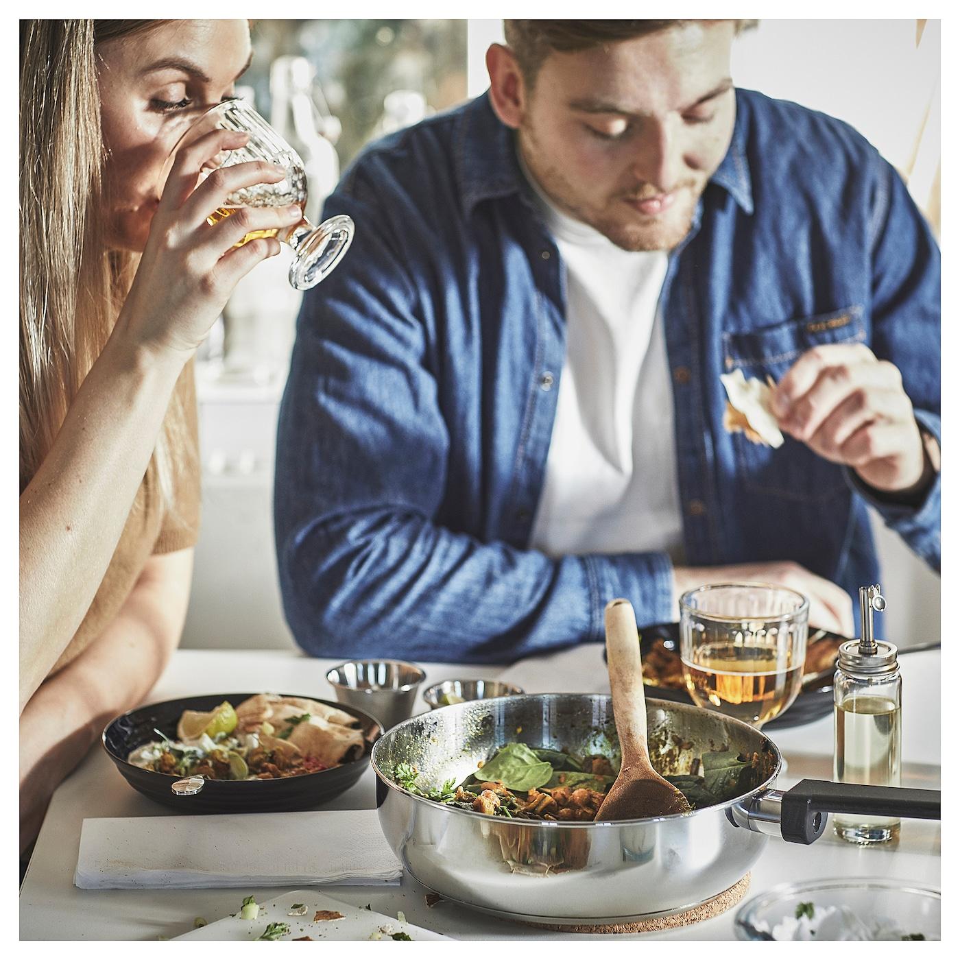 Вы можете готовить при небольшом уровне нагрева и экономить энергию, так как нержавеющая сталь хорошо нагревается и долго удерживает тепло.