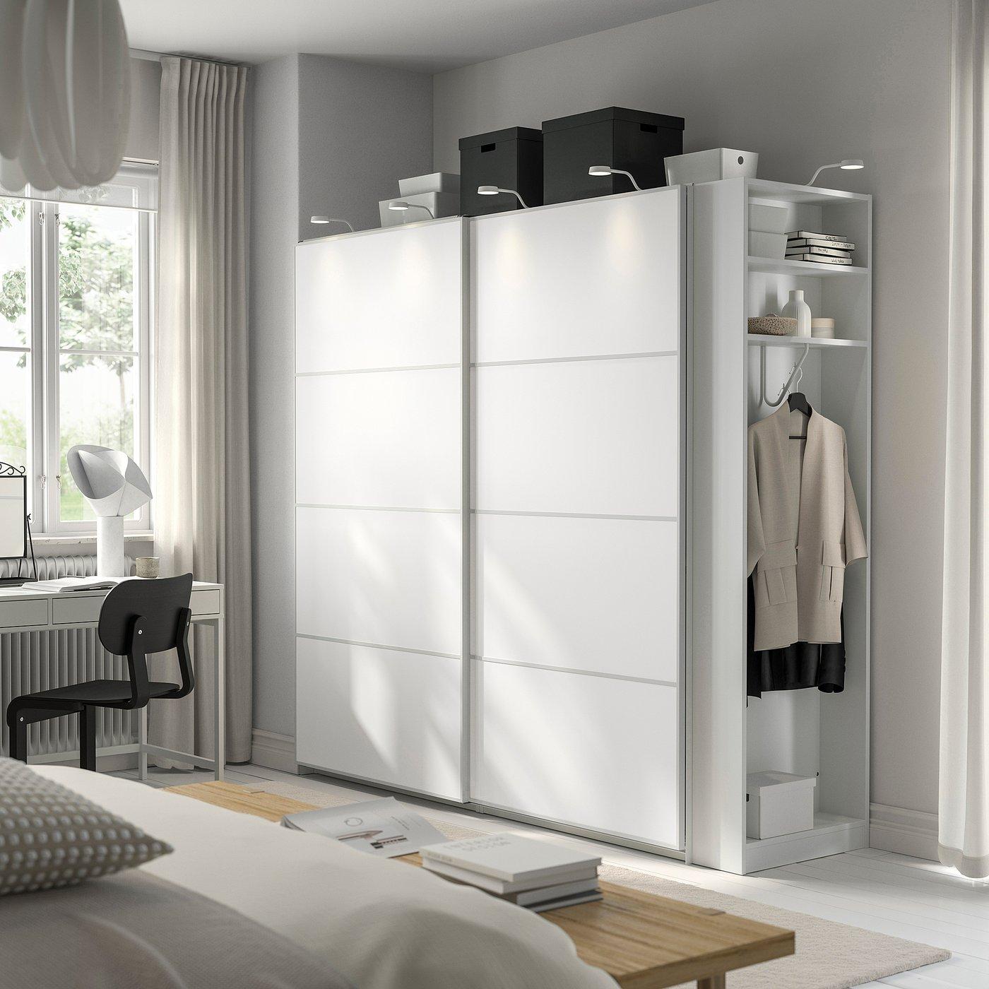 Бесплатно 10 лет гарантии. Подробнее об условиях гарантии — в гарантийной брошюре. Регулируемые ножки позволяют скорректировать неровности пола. Неглубокий каркас – идеальное решение для небольших помещений. С помощью программы планирования гардероба PAX вы можете легко дополнить свою комбинацию интегрированной подсветкой. После выбора источника освещения программа предложит необходимые аксессуары.