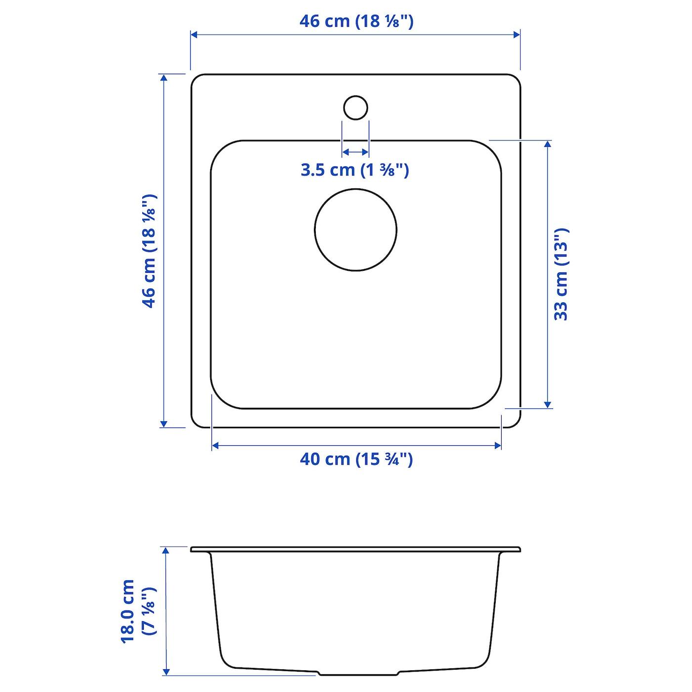 На широком заднем бортике мойки ЛОНГУДДЕН достаточно места для моющих средств, губок и щеток, чтобы не занимать поверхность столешницы.
