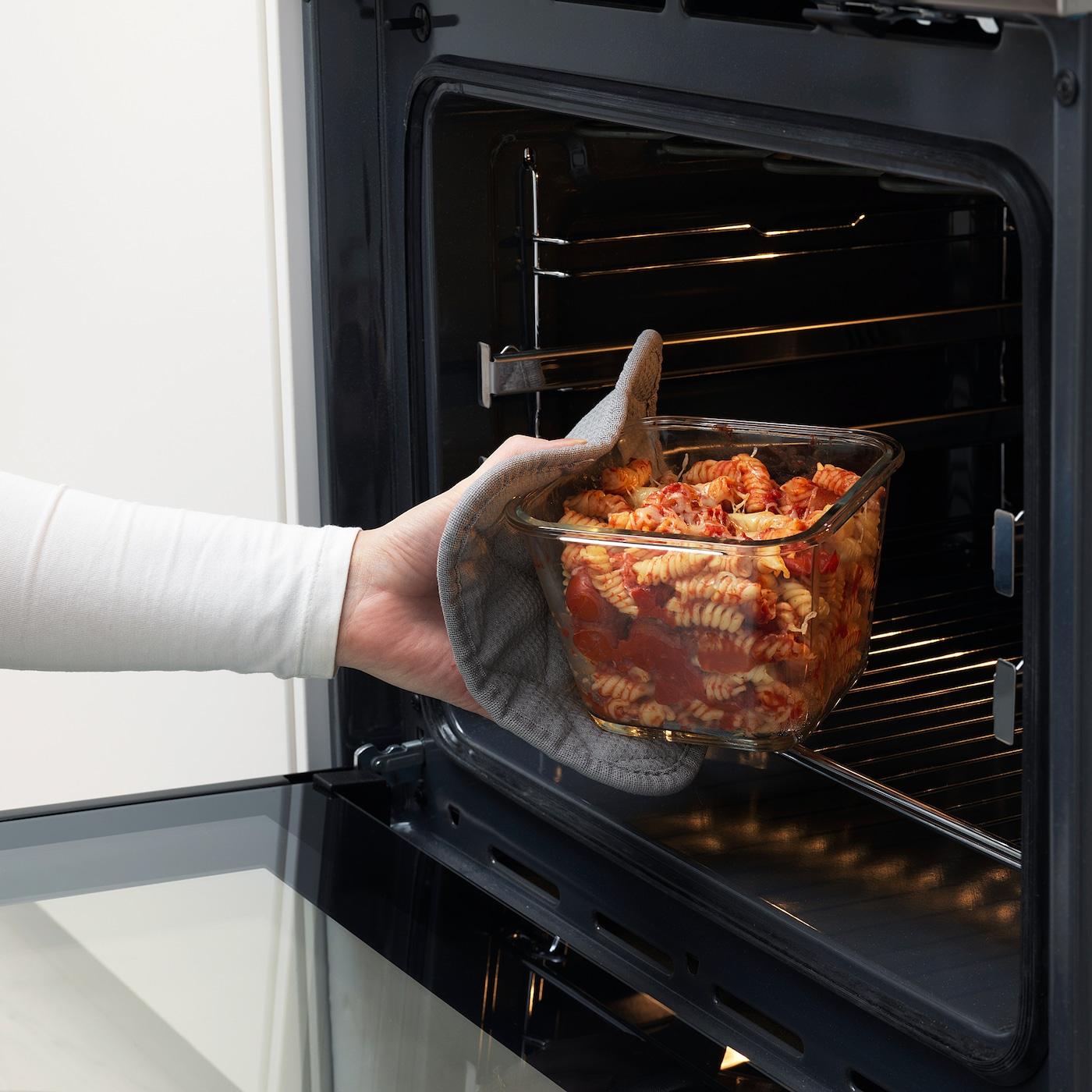 Изготовлено из жаропрочного стекла, можно использовать как форму для духовки, а также для подачи готового блюда на стол.