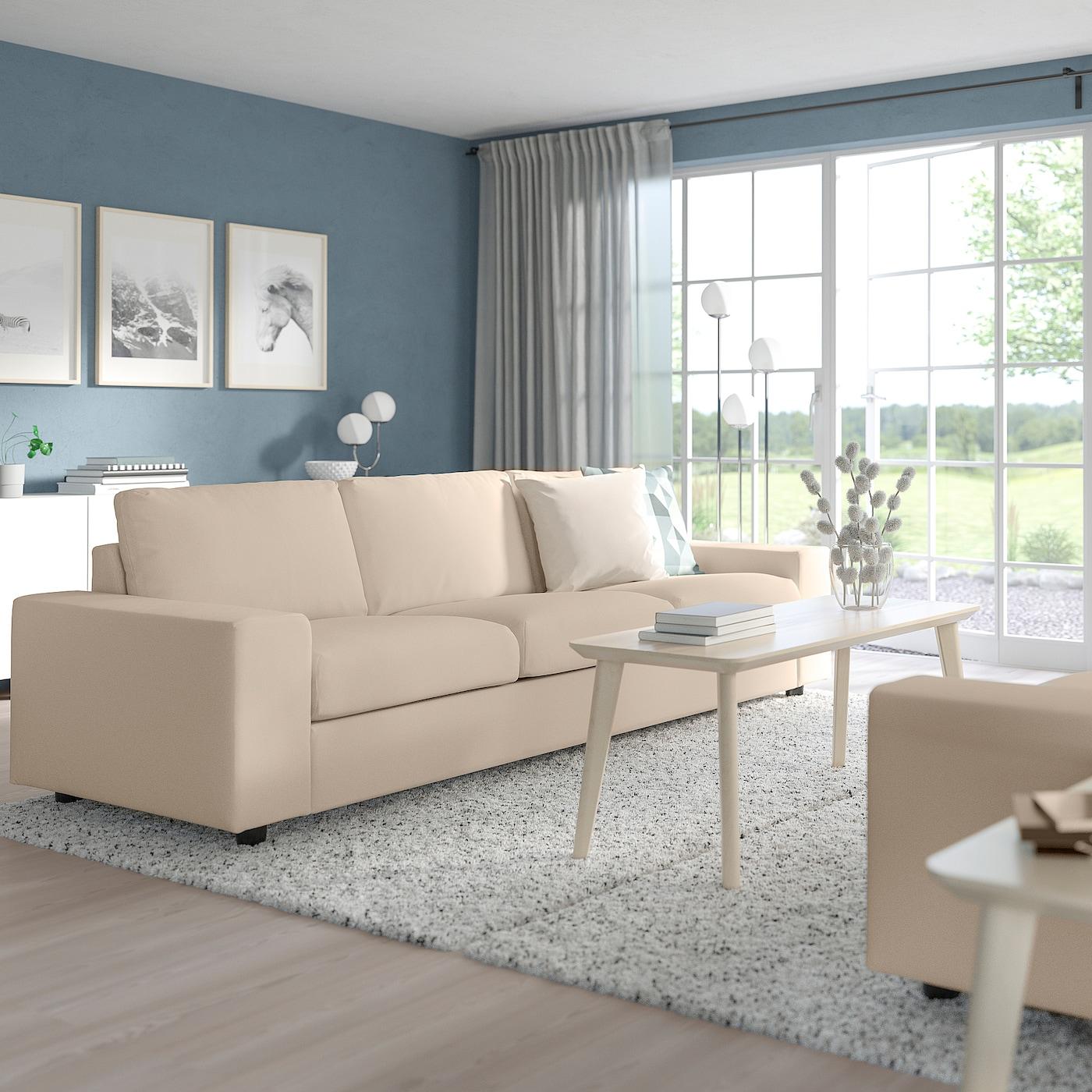 Можно дополнить подголовником ВИМЛЕ, чтобы сделать спинку дивана выше и обеспечить комфортную опору для шеи.