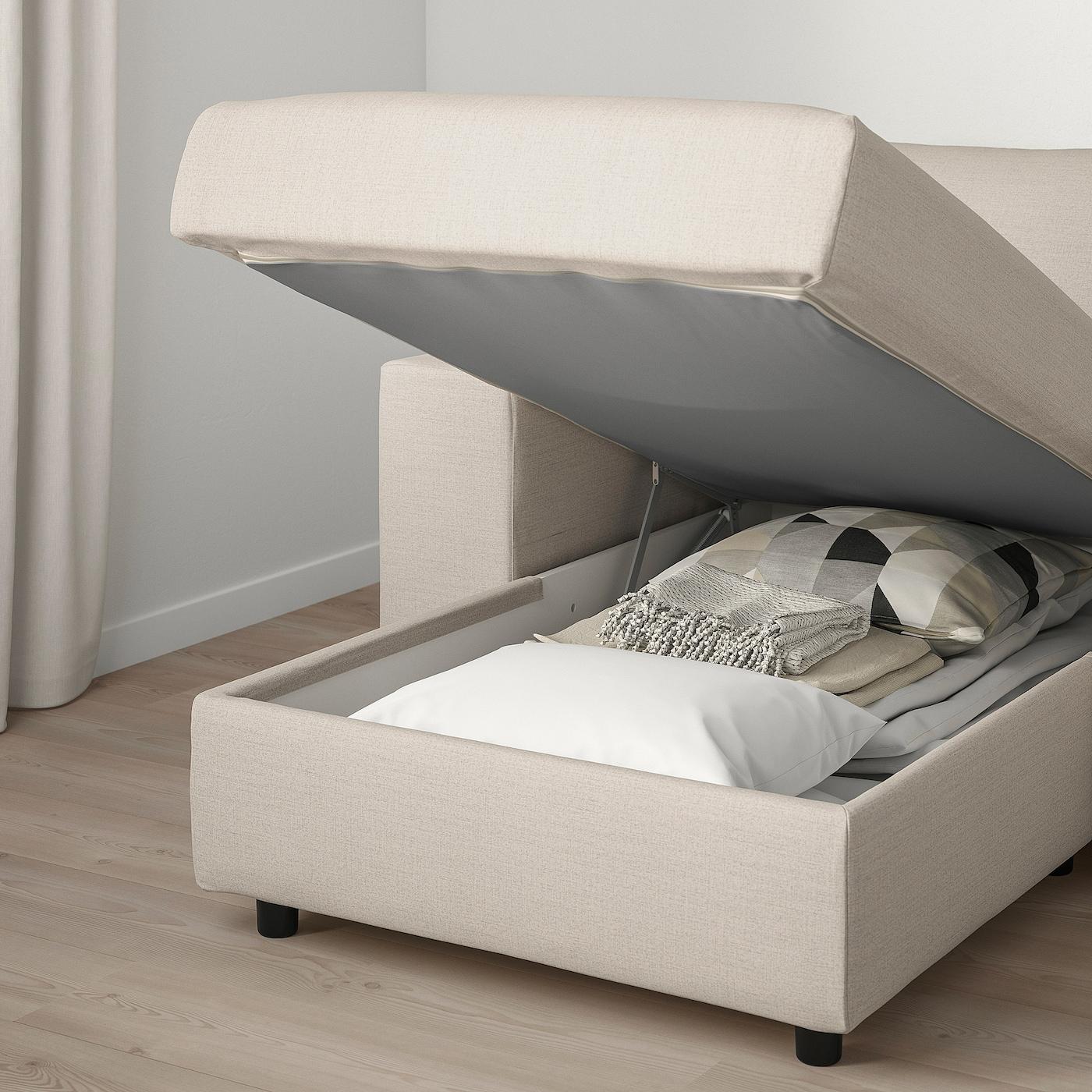 Можно дополнить подголовником ВИМЛЕ, чтобы сделать спинку дивана выше и обеспечить комфортную опору для шеи.