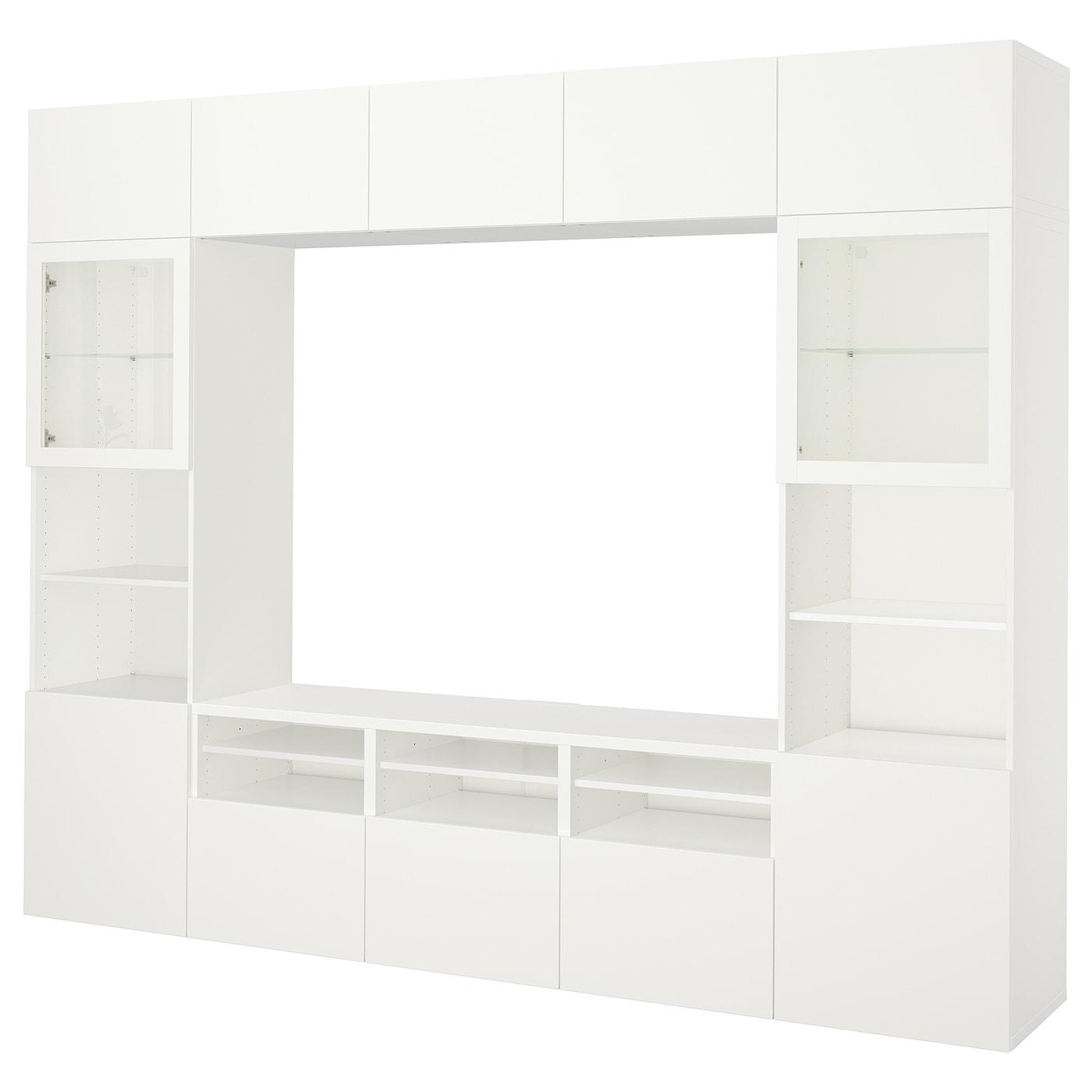 Настенные шкафчики позволяют эффективно использовать пространство над телевизором.