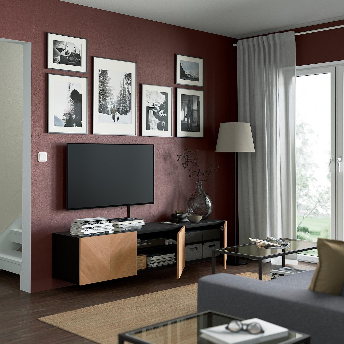 Чтобы подчеркнуть современный и лаконичный стиль интерьера, тумбу под ТВ БЕСТО можно закрепить на стене. Дополнительный плюс — ножки не будут мешать уборке.