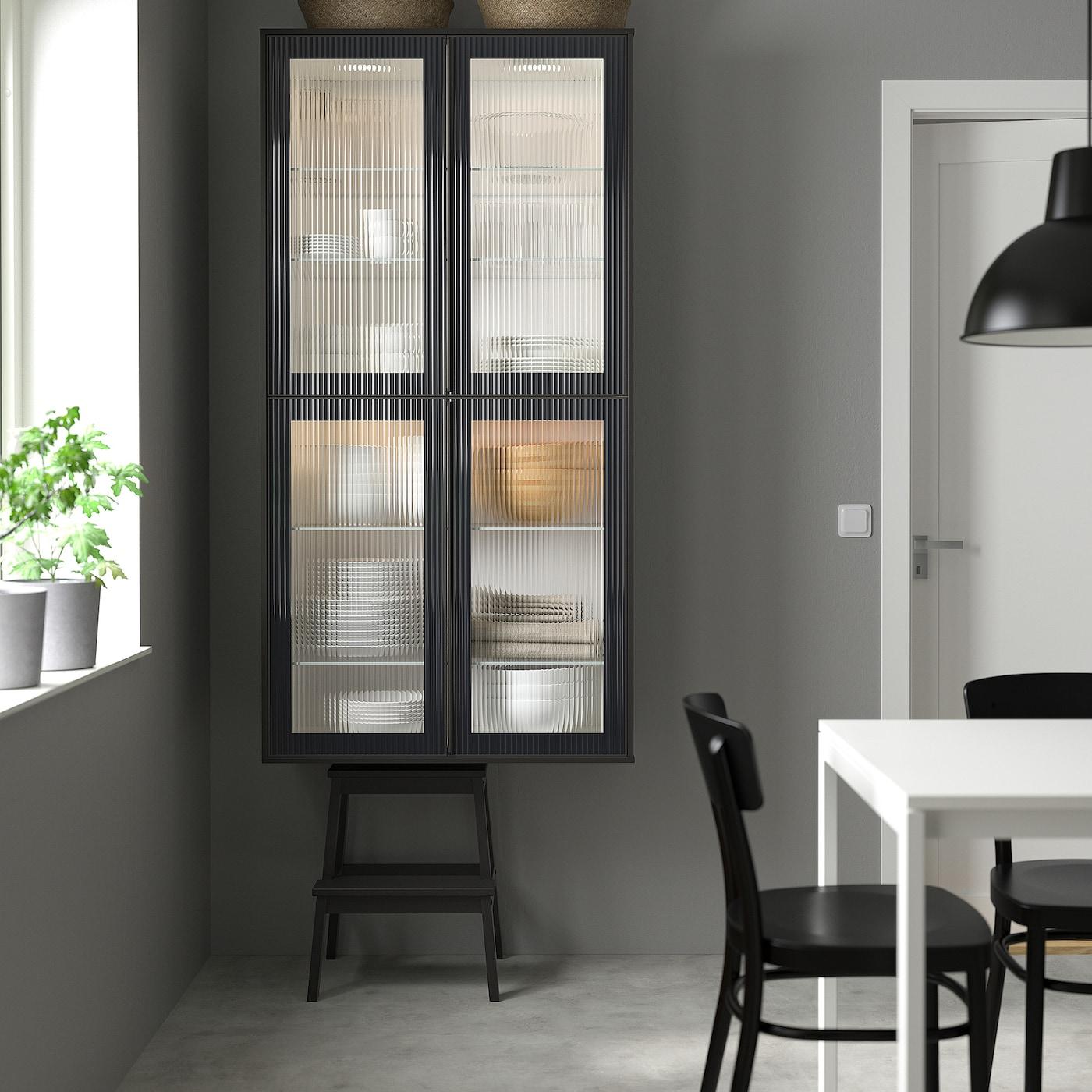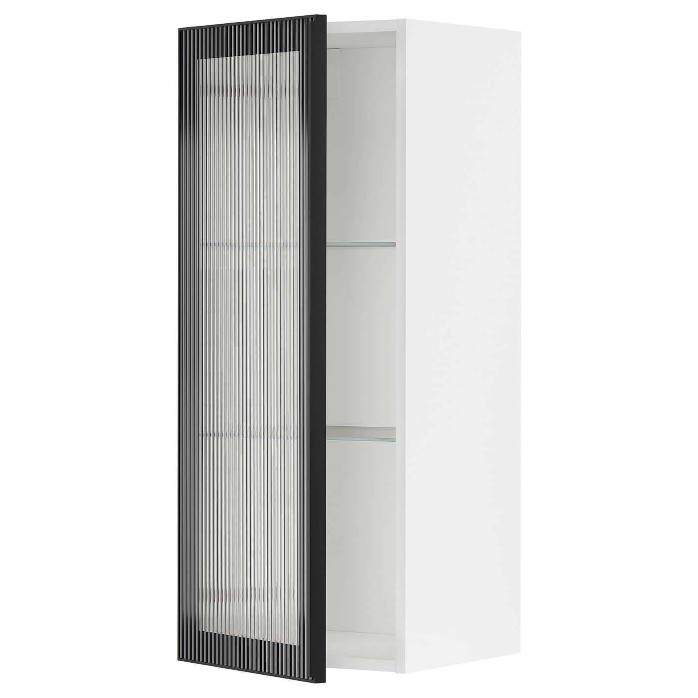 навесной шкаф/полки/стеклян дверца, белый/Hejsta антрацитовое рифленое стекло, 40x100 см