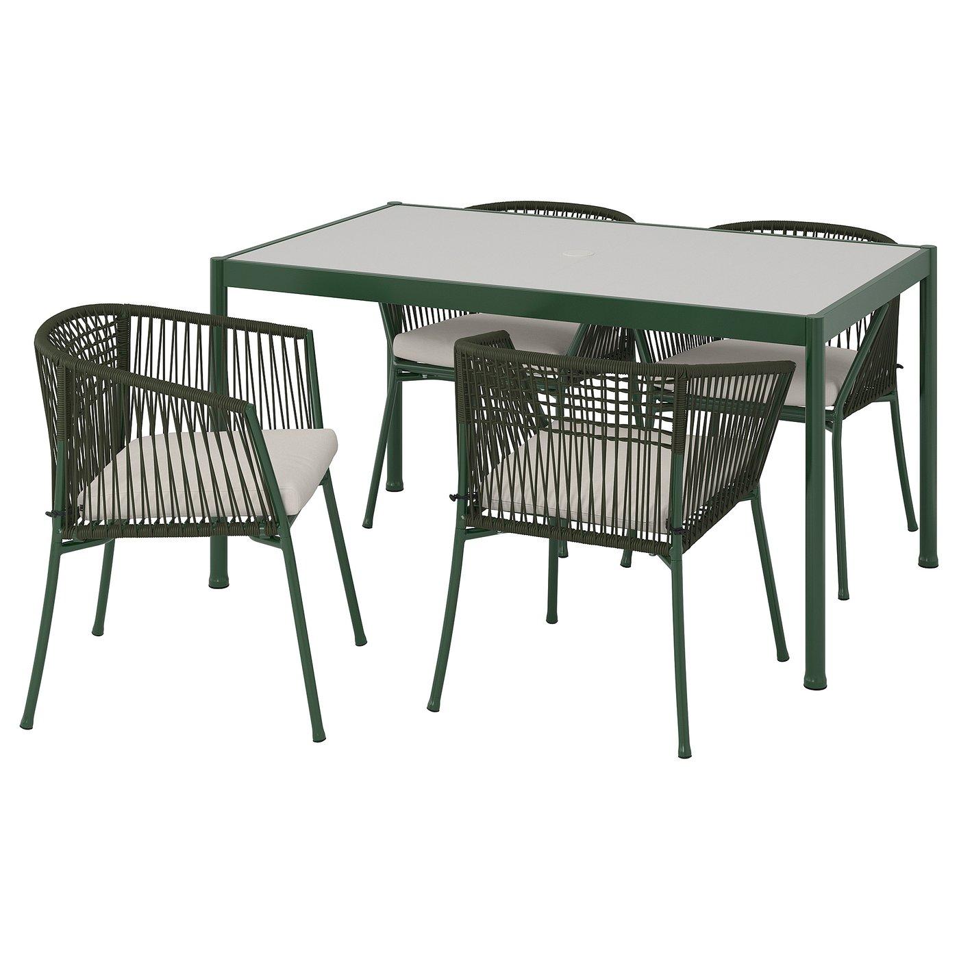 Отверстие в центре столешницы позволяет установить зонт от солнца.