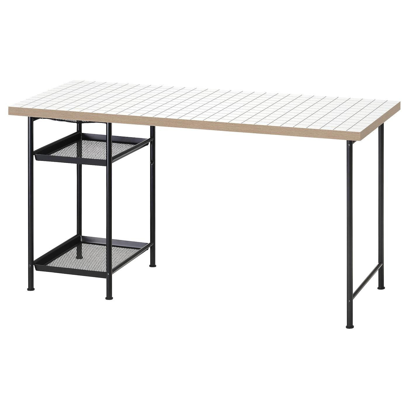 На двух полках достаточно места для бумаги, блокнотов и книг, что позволяет освободить столешницу.
