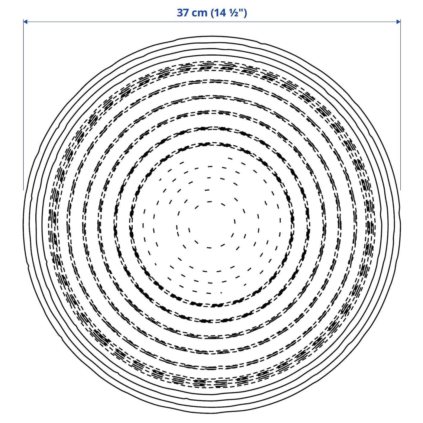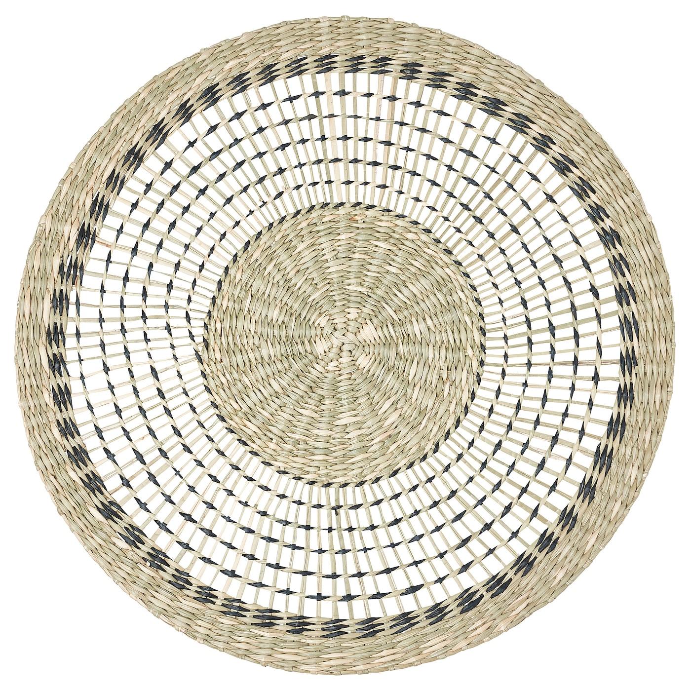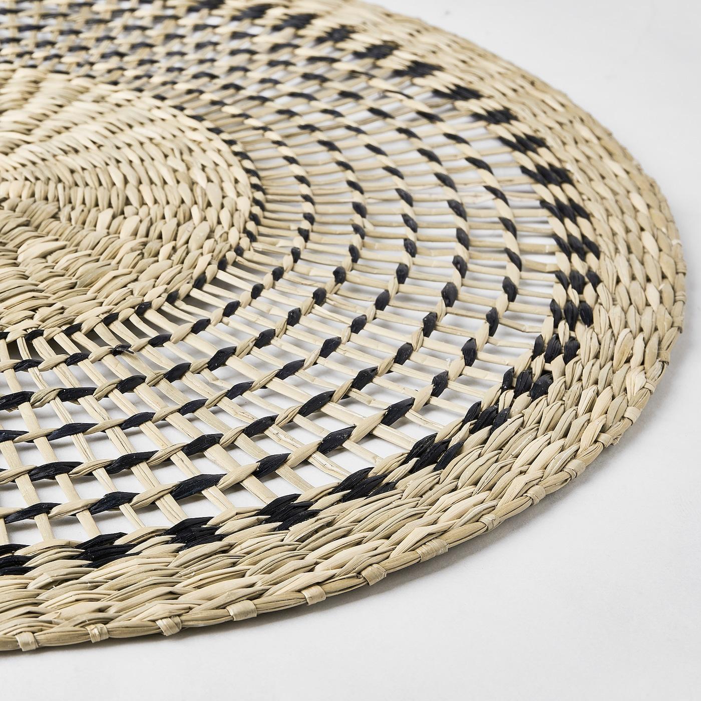 Круглая форма и выразительный тканый орнамент дополнят сервировку, а коврик защитит поверхность стола.
