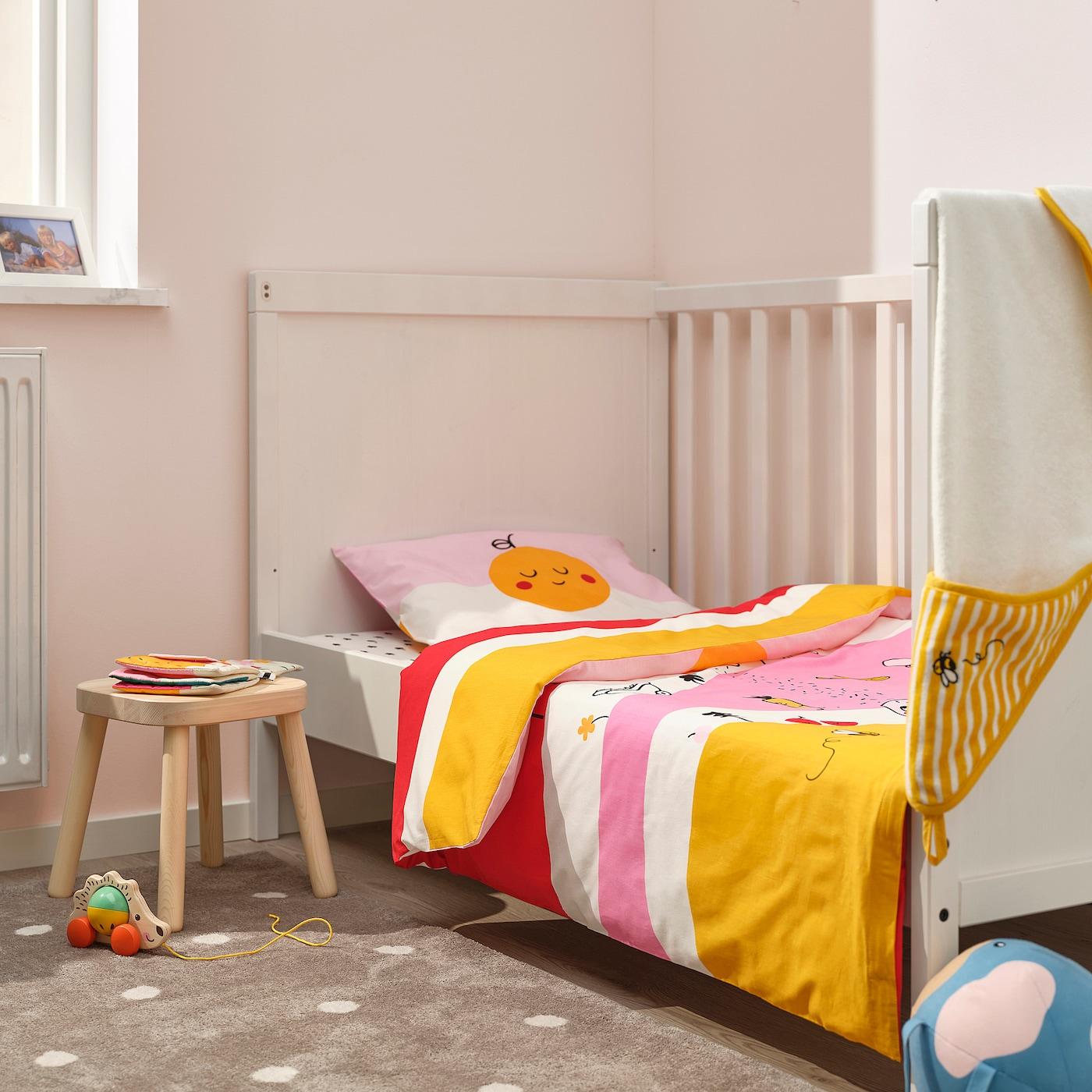 Ткань изготовлена из хлопка, который производится с заботой о людях и природе. Это натуральный прочный материал, который становится мягче с каждой стиркой.