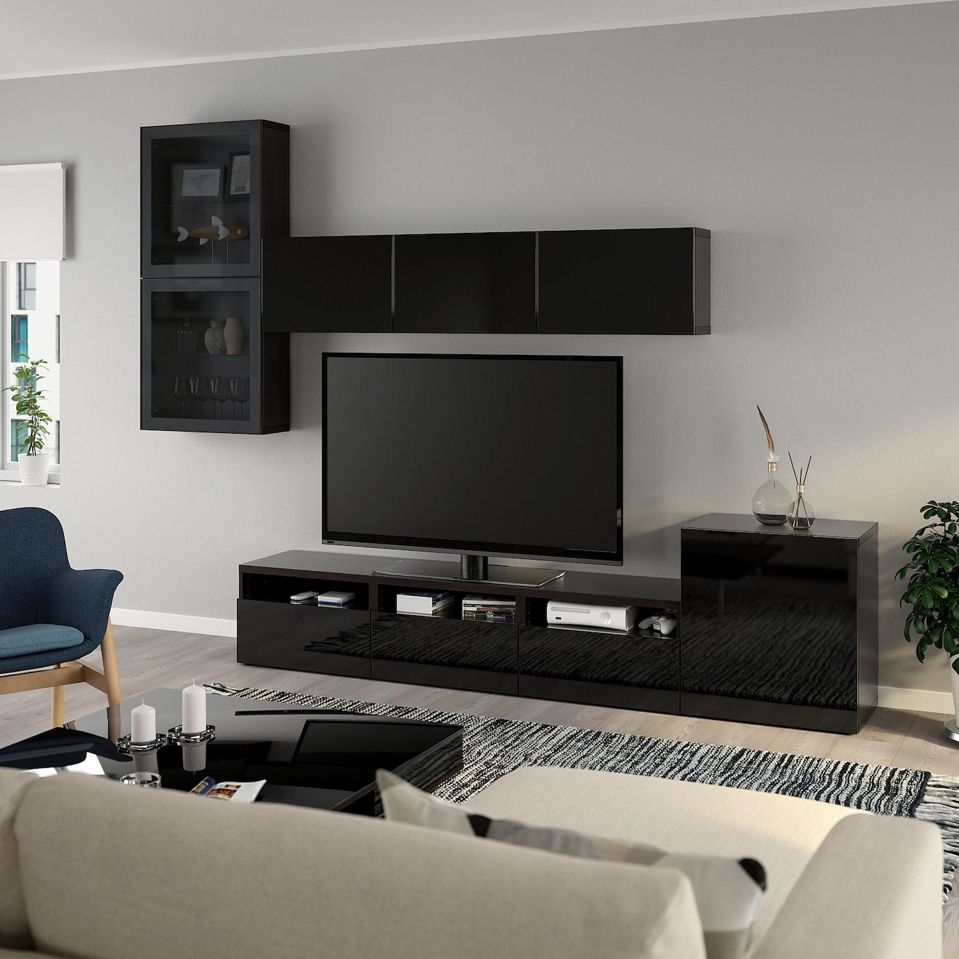 Настенные шкафчики позволяют эффективно использовать пространство над телевизором.