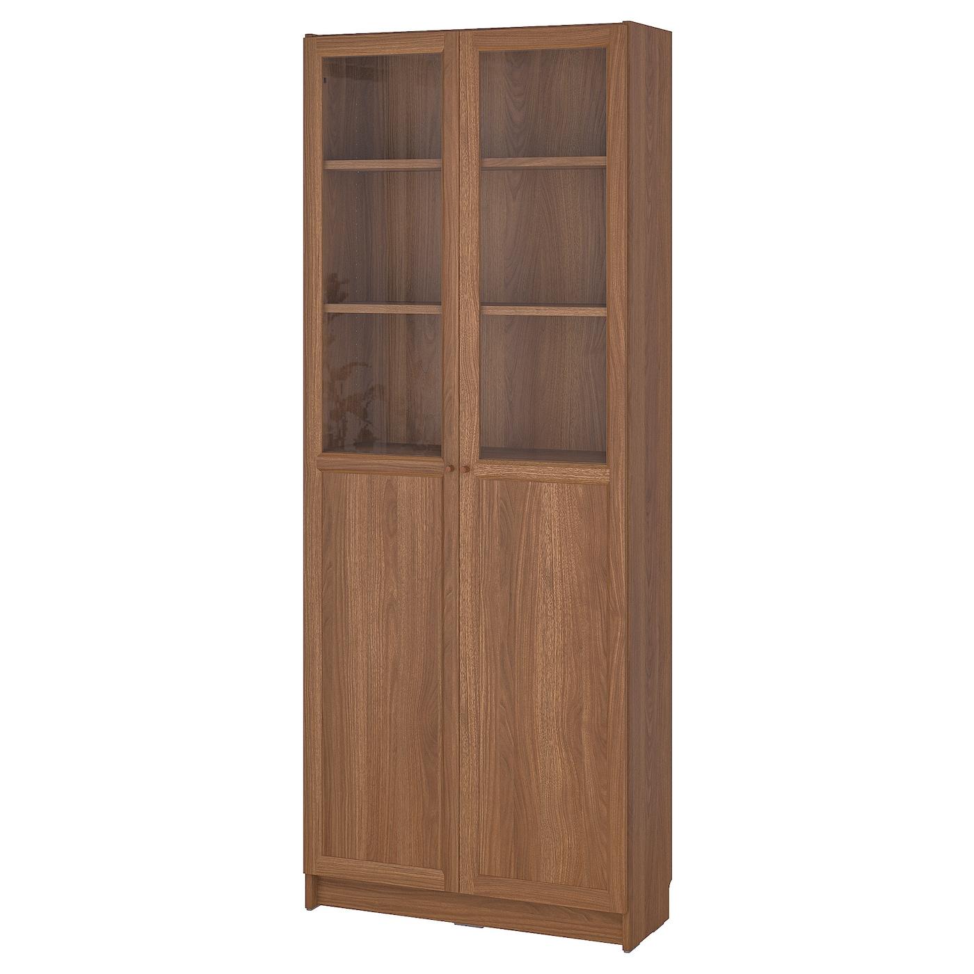 стеллаж/панельные/стеклянные двери, коричневый под грецкий орех, 80x30x202 см