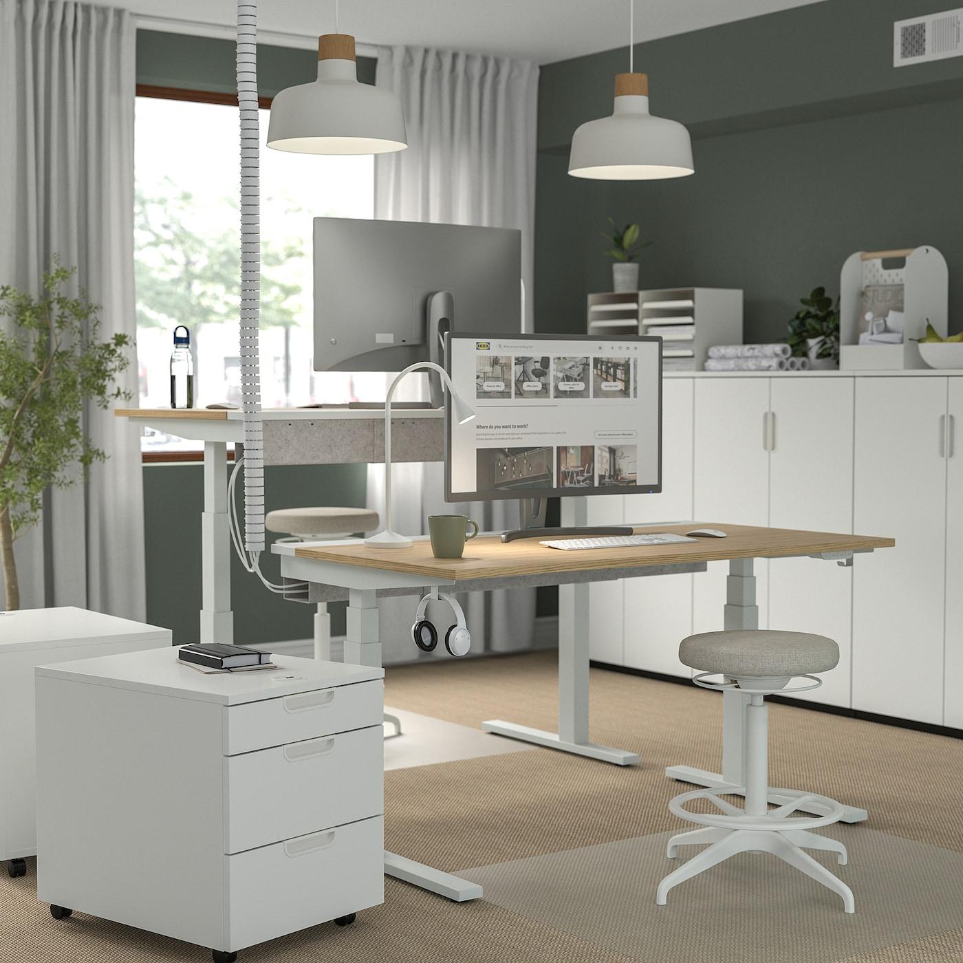 Провода можно убрать в отделение стола с крышкой и провести под столом в лоток для размещения проводов.