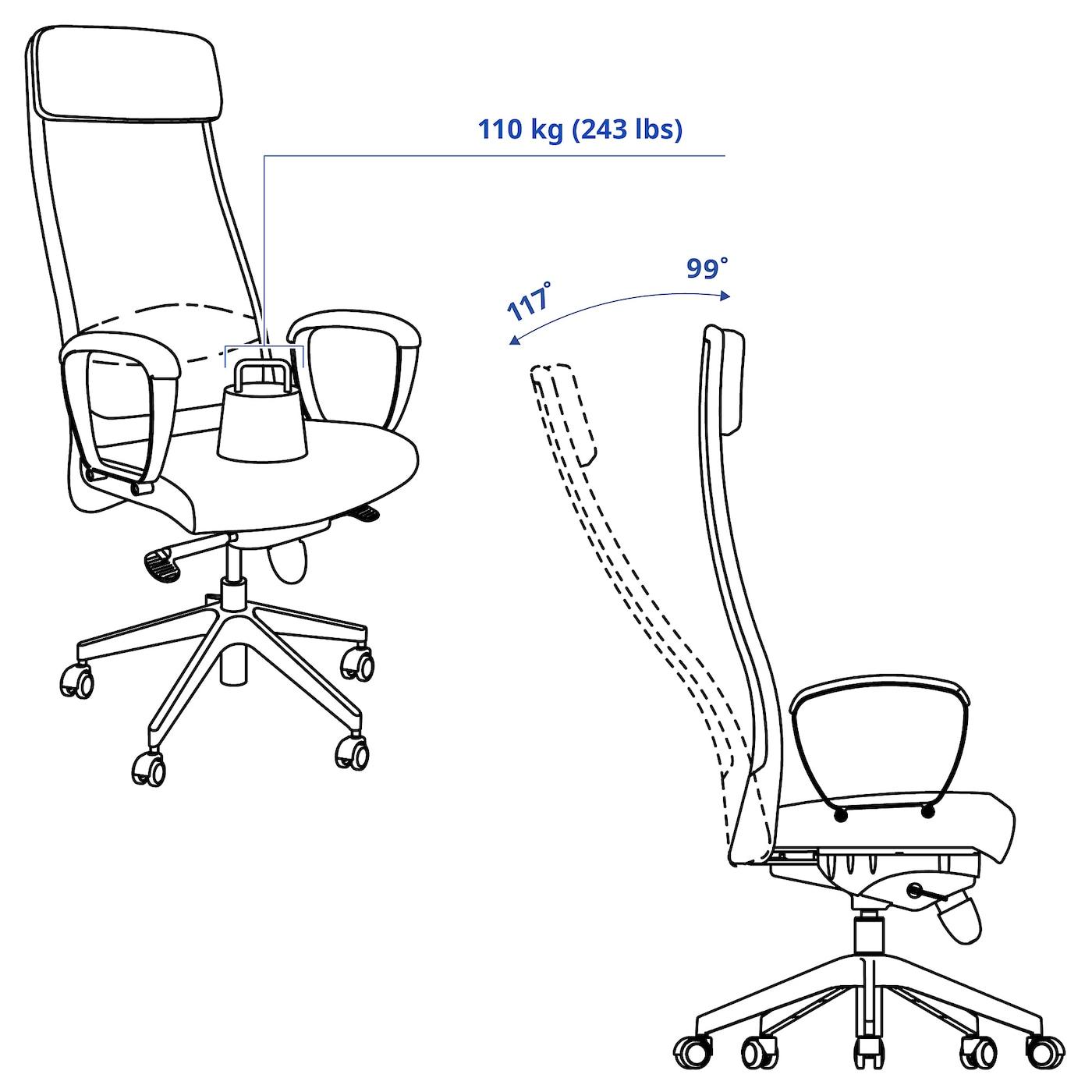 рабочий стул, Vissle темно-серый dimensions