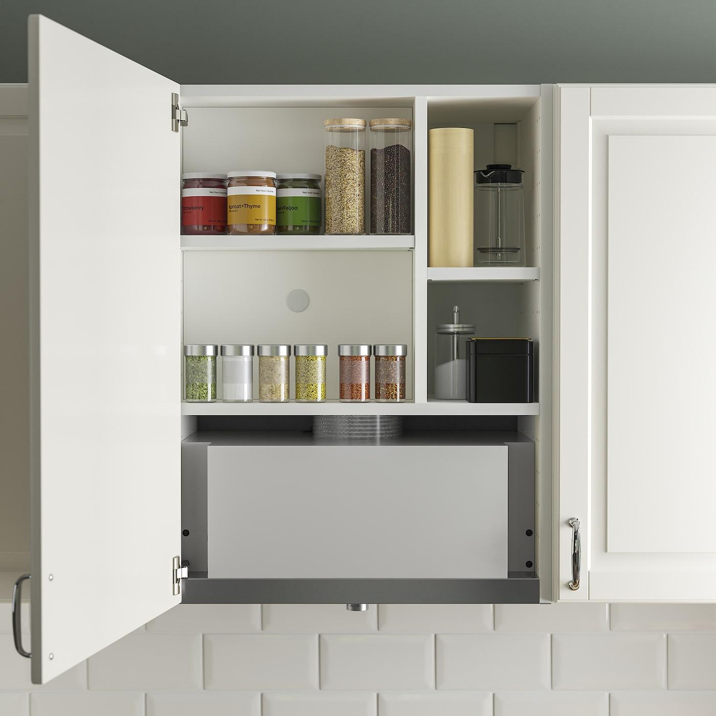 Встраивается; устанавливается за дверцей кухонного шкафа, придавая интерьеру гармоничный облик.